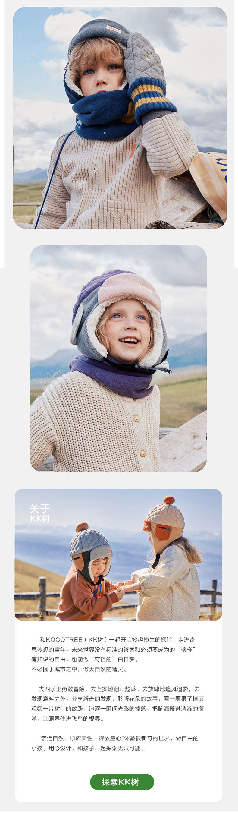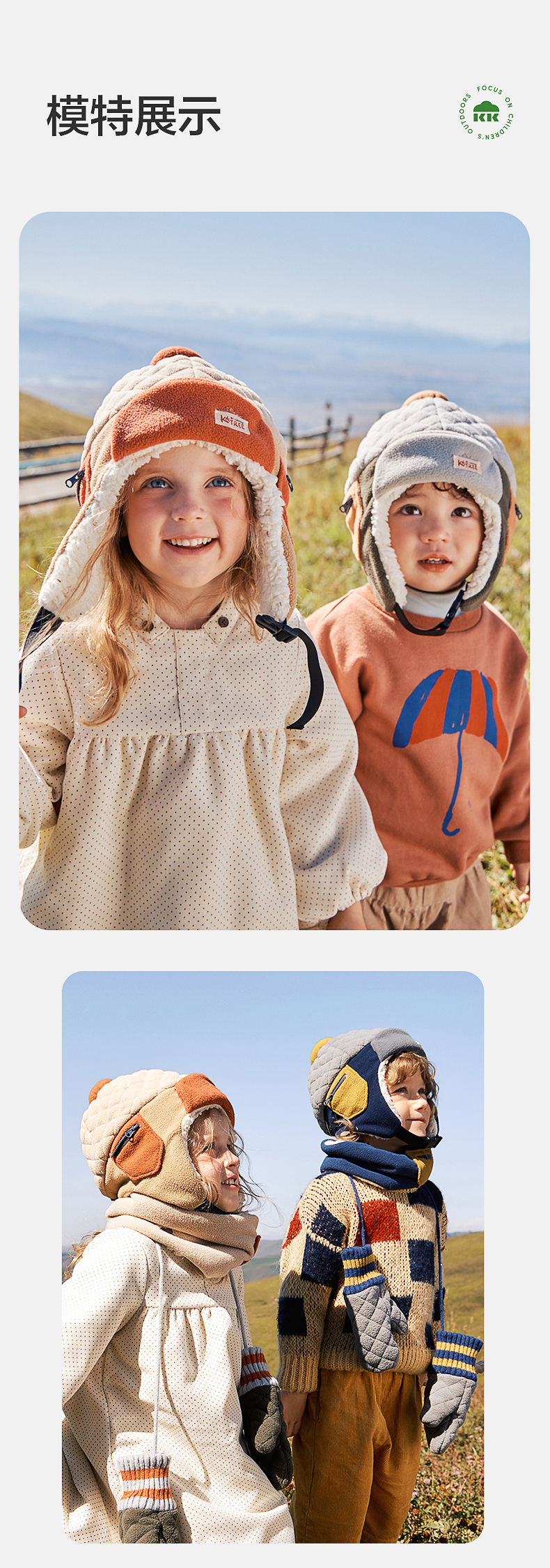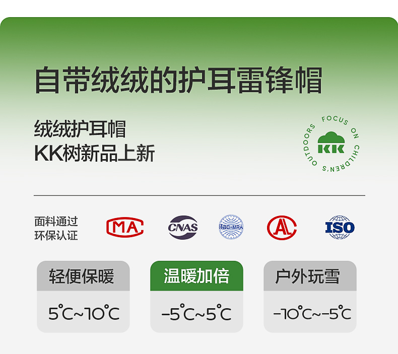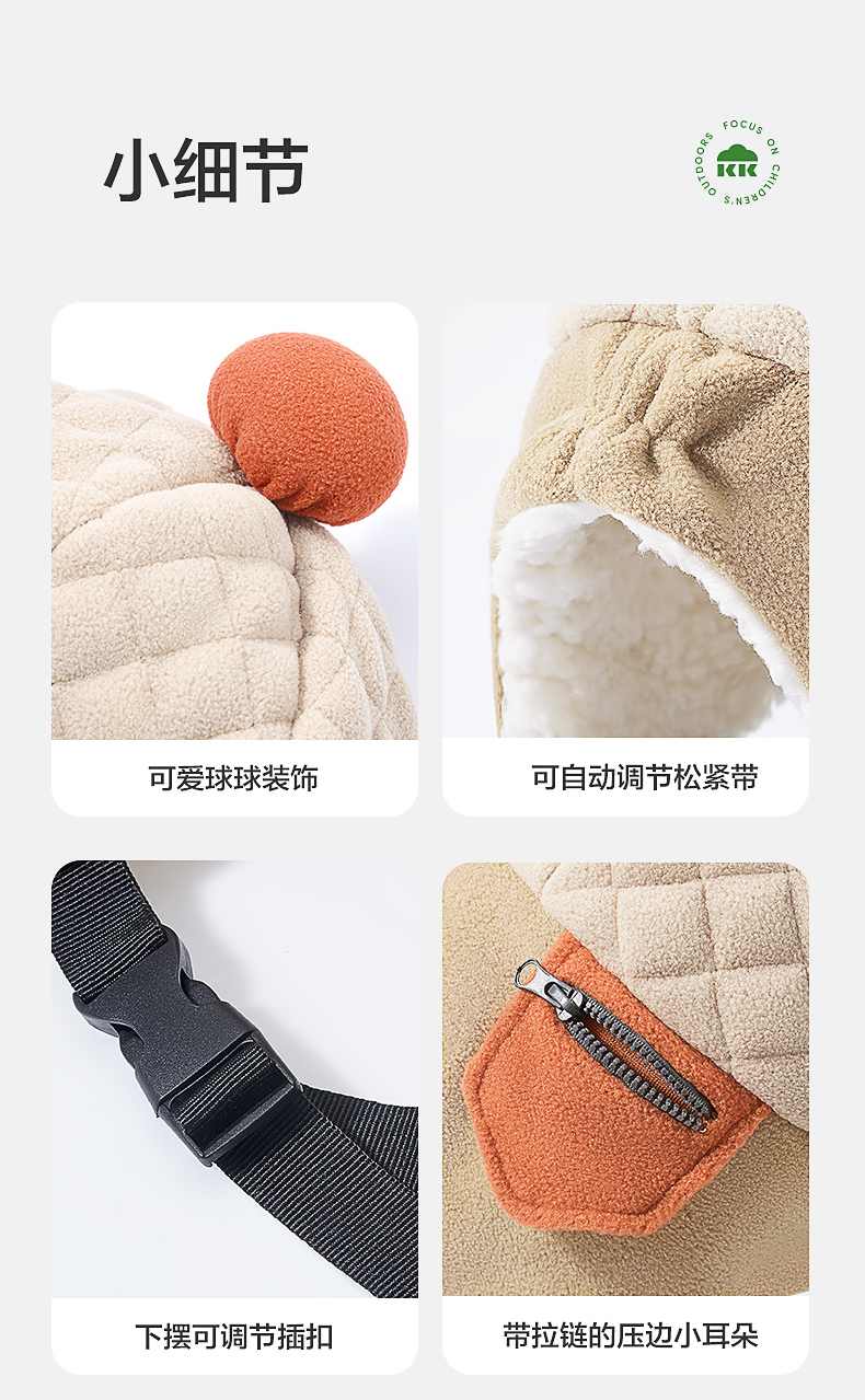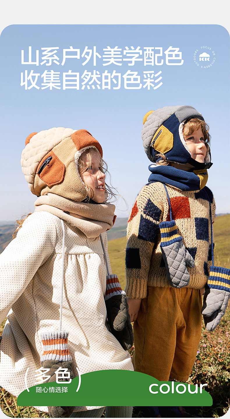KK树绒绒护耳帽儿童帽子秋冬款宝宝雷锋帽保暖抗静电男童女孩A类野营日记护耳帽