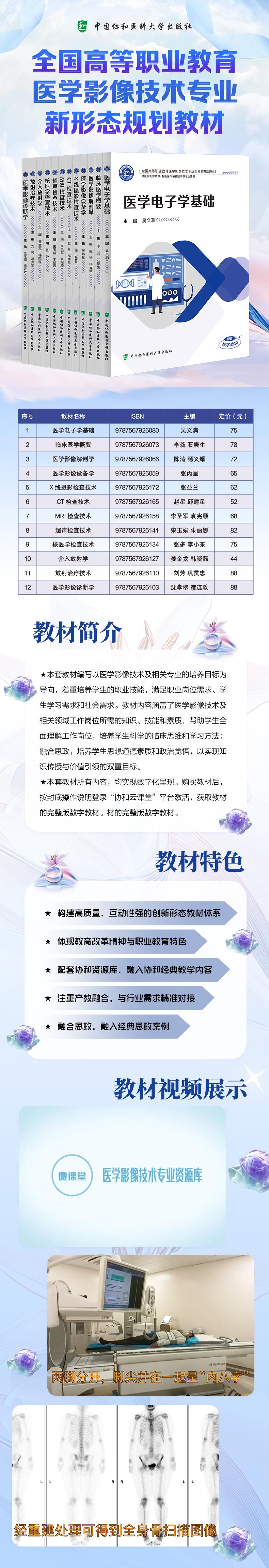 本教材是"全国高等职业教育医学影像技术专业新形态规划教材"之一,系根据本套教材的编写指导思想和原则要求,结合专业培养目标和本课程要求的教学目标编写而成,内容涵盖了医学影像设备学的基本原理、各类医学影像设备(如X线成像设备、CT、MRI、超声、核医学等)的构造、成像原理、操作与维护、图像后处理技术及医学影像设备的发展趋势。此外,本教材还增加了丰富的数字资源,包括微课、课件、思维导图、岗位对标考试等知识点总结、能力测试等,丰富了教材内容,增强了线上和线下教学的联动性,以提升学生学习的主动性和积极性。本教材主要供医学影像技术、智能医疗装备技术、放射治疗技术等相关专业使用,还可作为医学影像相关专业人员的参考书。