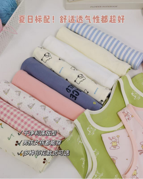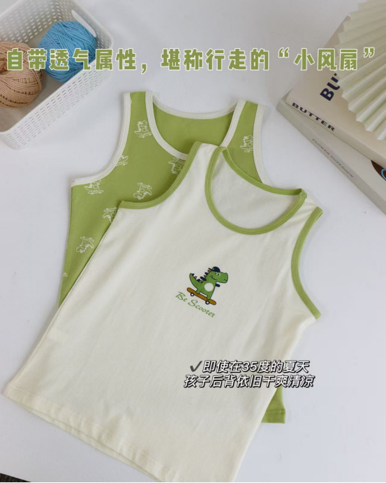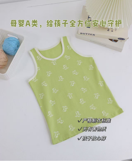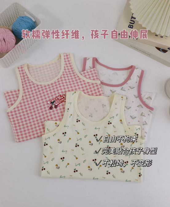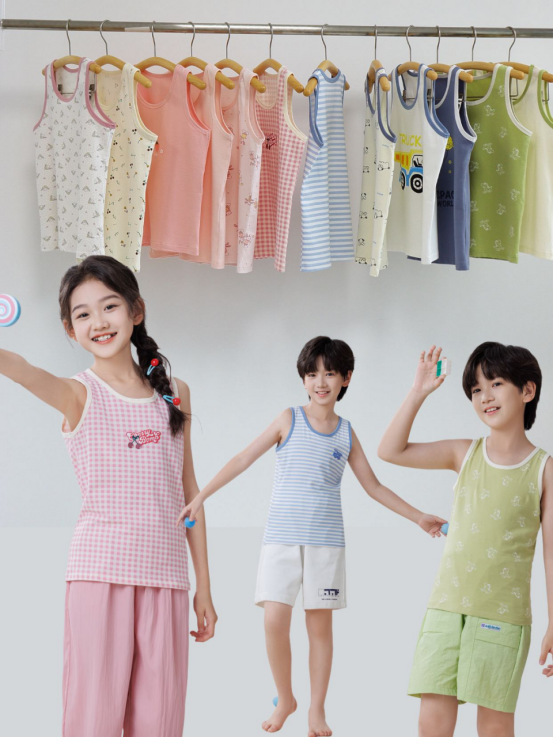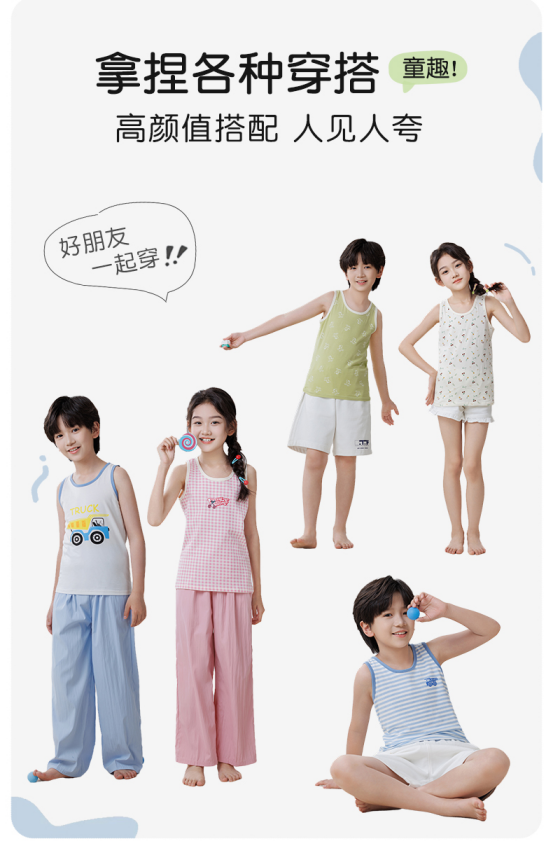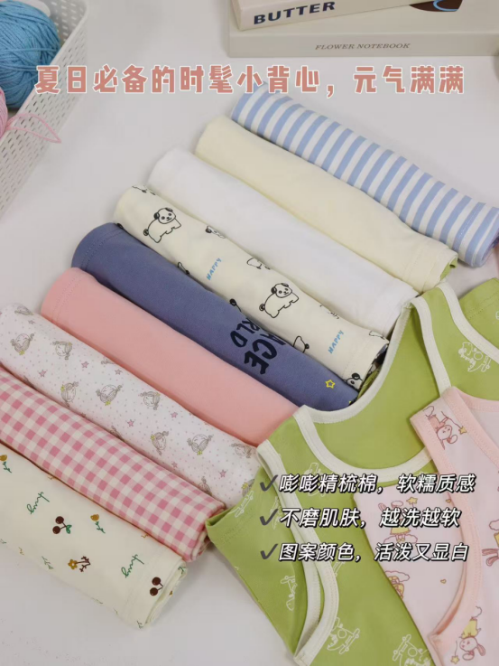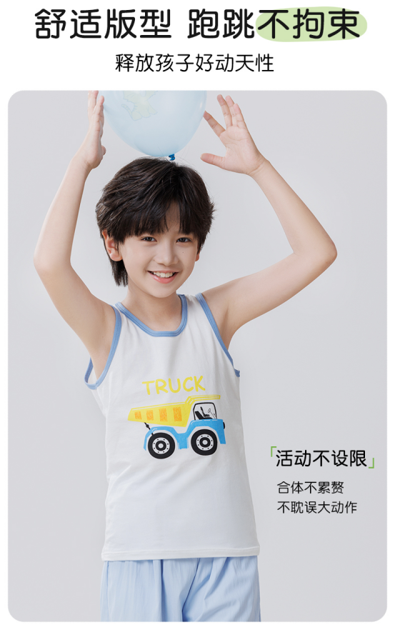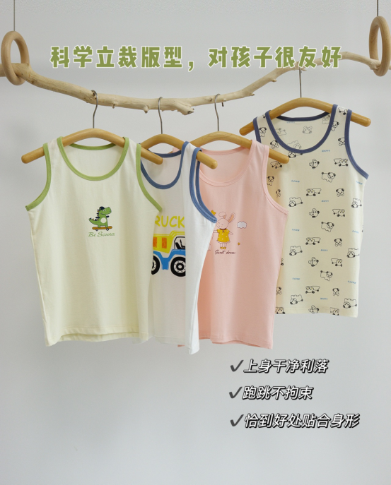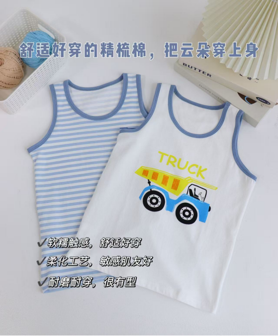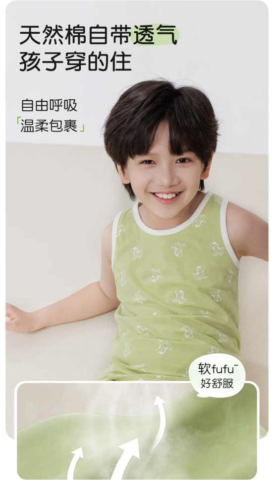 重新定义儿童背心的舒适标准 云感精梳棉,把云朵穿在身上 独特的软糯触感,像“棉花糖”一样 不同于普通棉的生硬 每一根纤维都经过 8 道柔化工艺 敏感肌孩子穿上也格外舒适 同时兼具耐磨耐穿,舒适有型