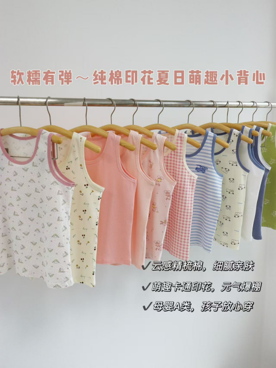 夏天真的多穿一点都嫌热 孩子更是怕热体质 这样的好穿小背心安排上 颜色图案活泼又显白 一整个元气满满的ins风 嘭嘭精梳棉,是特别软的质感 柔软贴合不磨肌肤,越洗越软 透气不粘身,夏日放心穿~