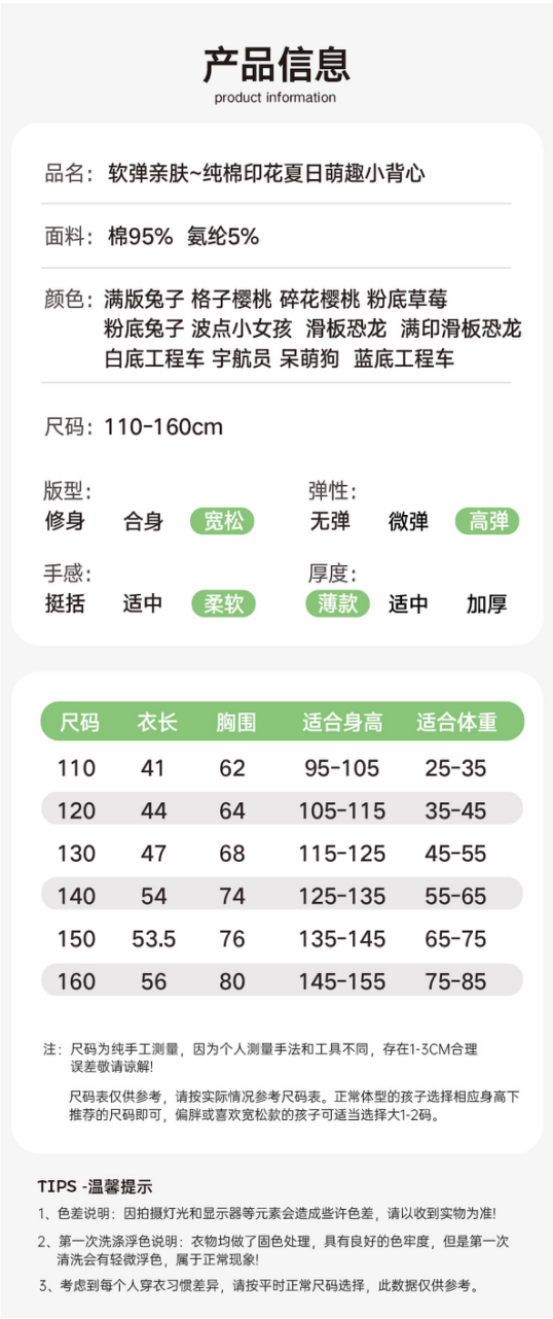 夏日标配的小背心,可可爱爱 舒适透气性都超好 干净利落的版型,男宝女宝都可 穿上身清清爽爽,不挑搭配 多种萌趣印花,满足孩子童真幻想