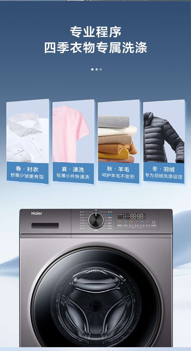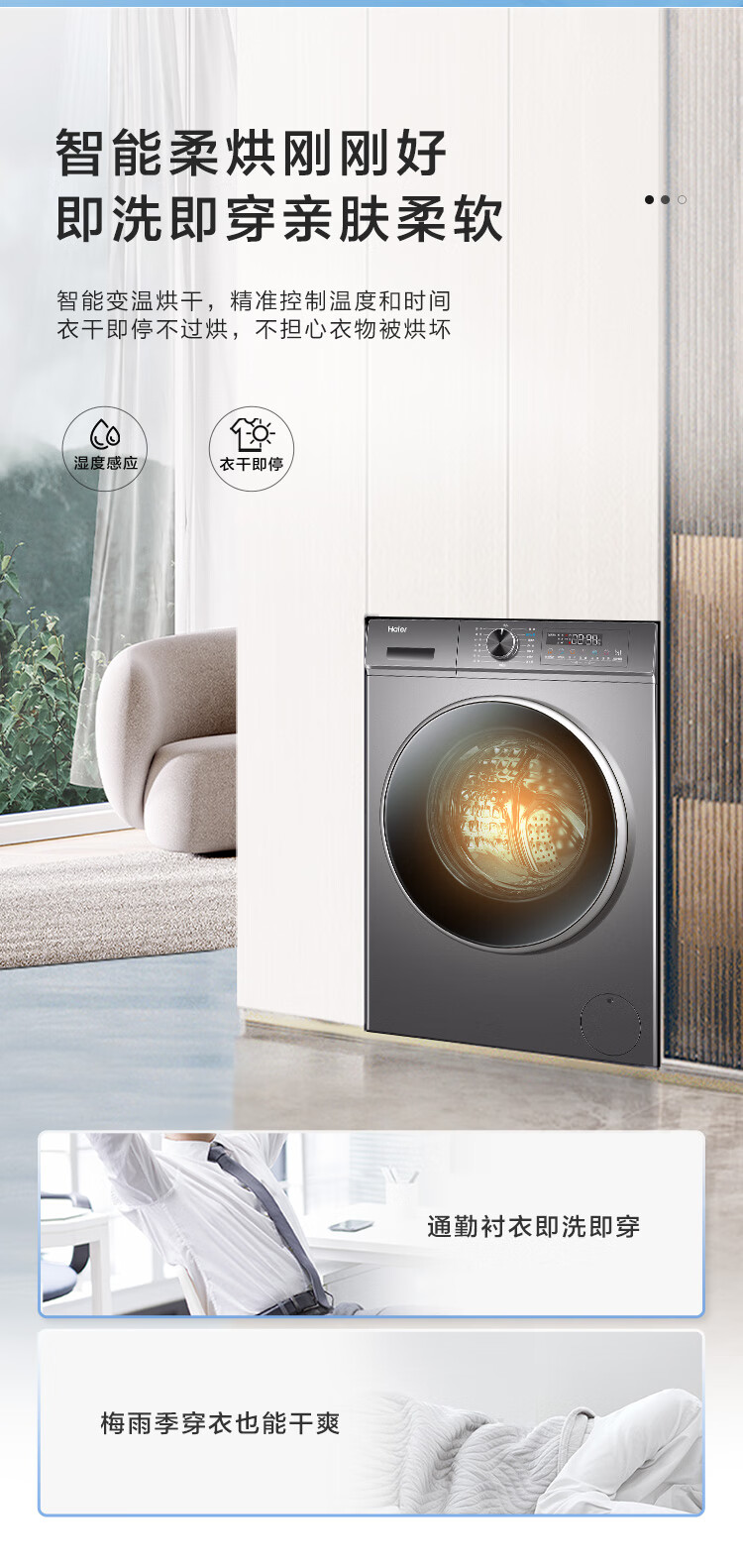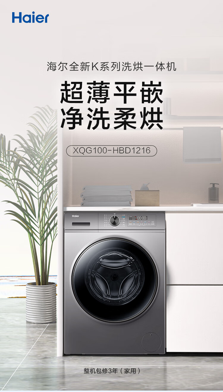 海尔(Haier)10KG滚筒洗衣机全自动家用大容量智能变频一级能效羽绒洗1.1高洗净比+洗烘一体XQG100-HBD1216