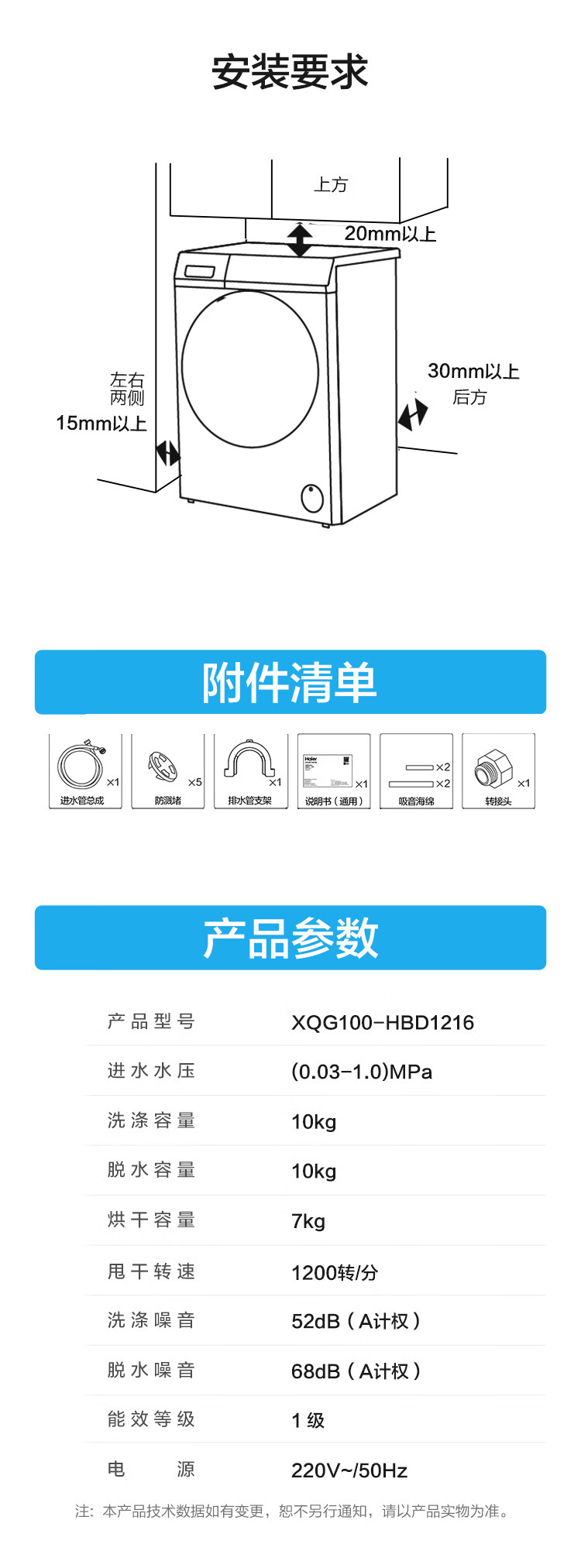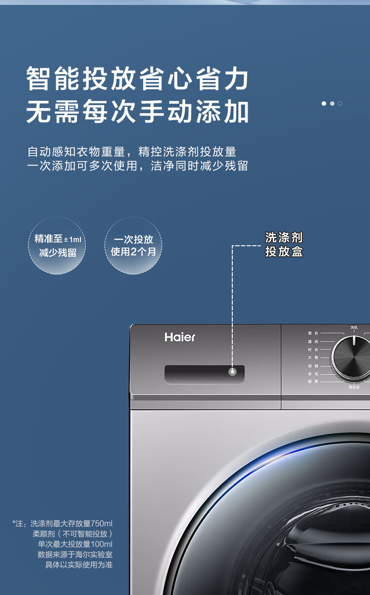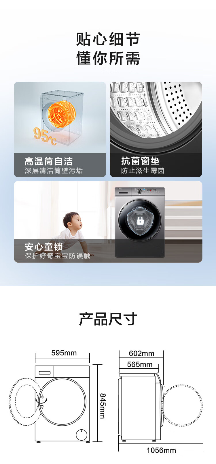 海尔(Haier)10KG滚筒洗衣机全自动家用大容量智能变频一级能效羽绒洗1.1高洗净比+洗烘一体XQG100-HBD1216