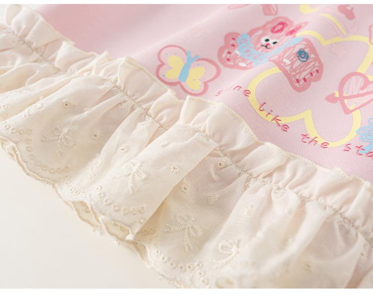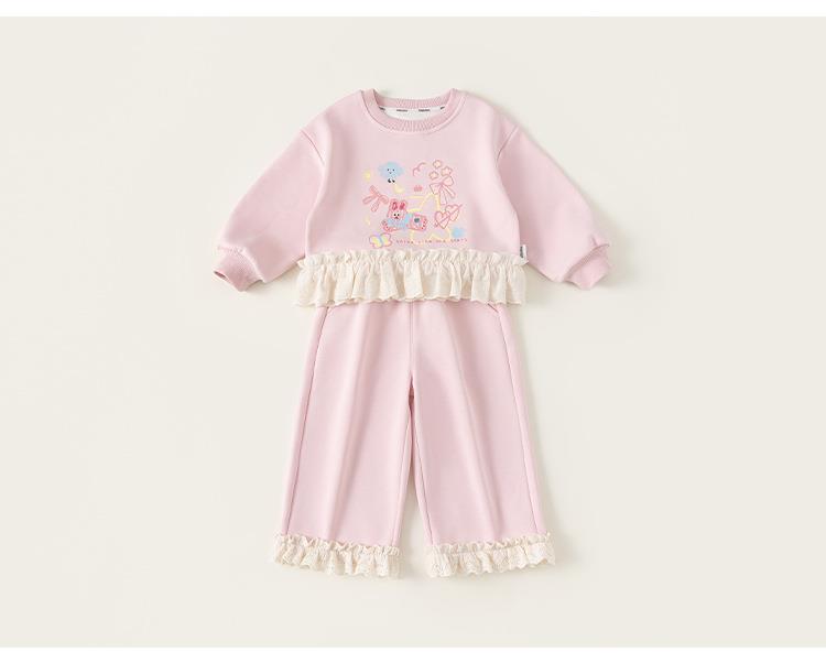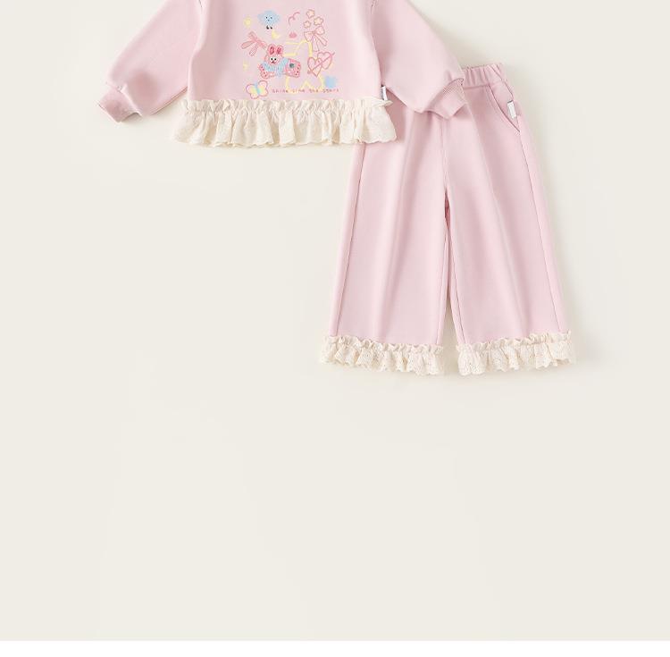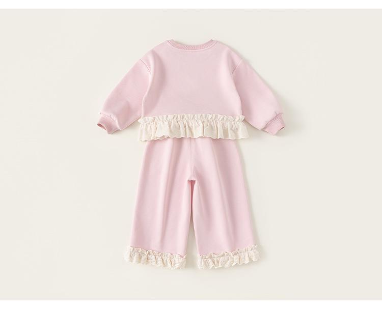 宥宝童装女童套装春季新品粉色花边拼接卫衣宽松休闲裤儿童两件套