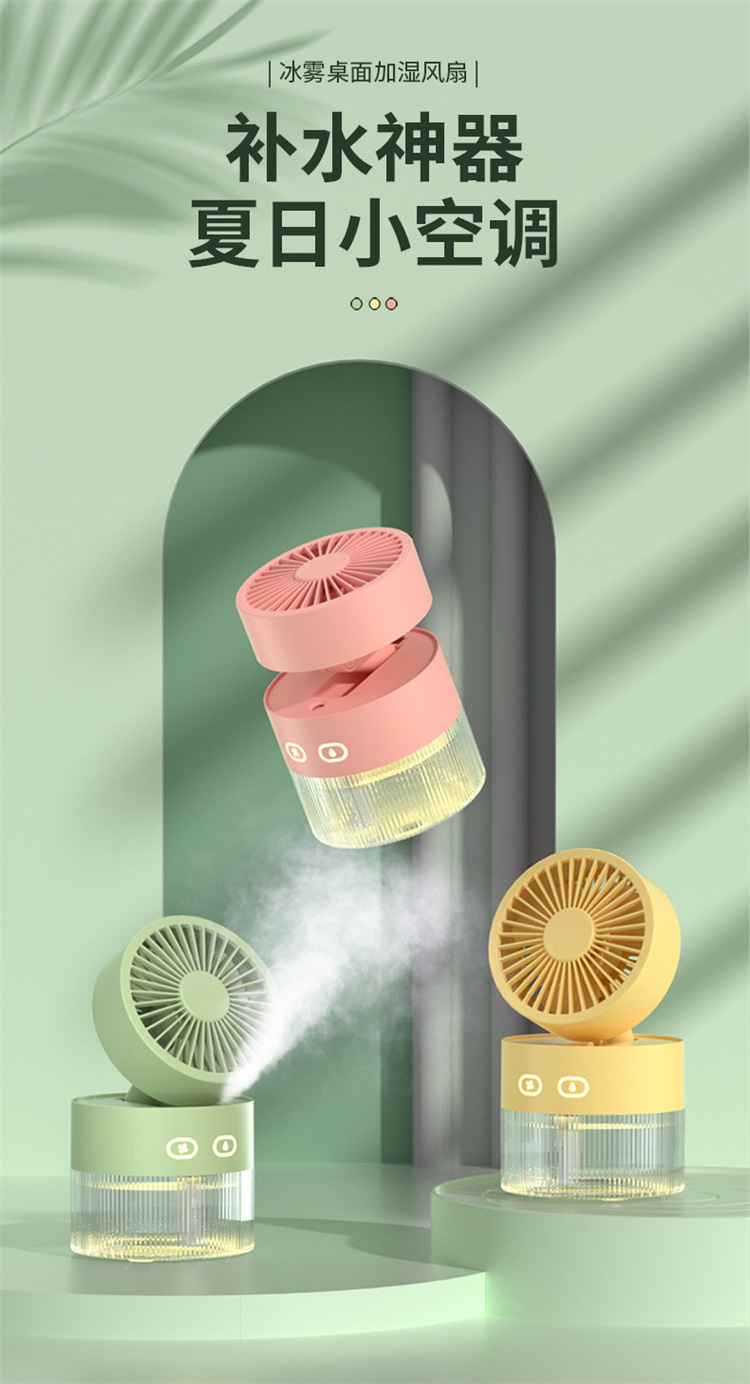 【冰雾快速降温】水冷风扇usb迷你小风扇桌面风扇涡轮可折叠冷风加湿喷雾风扇.TA