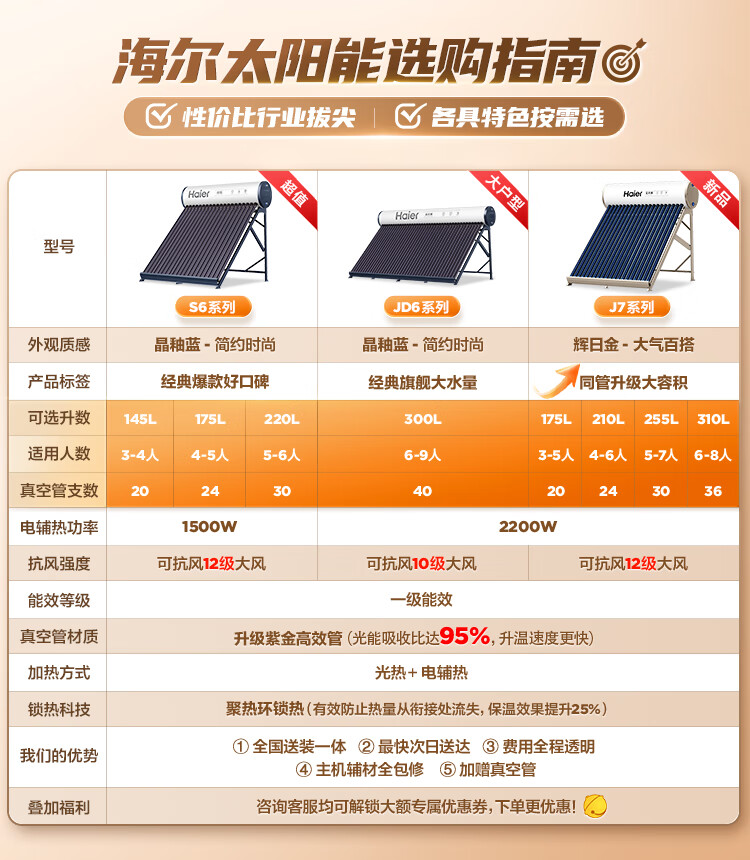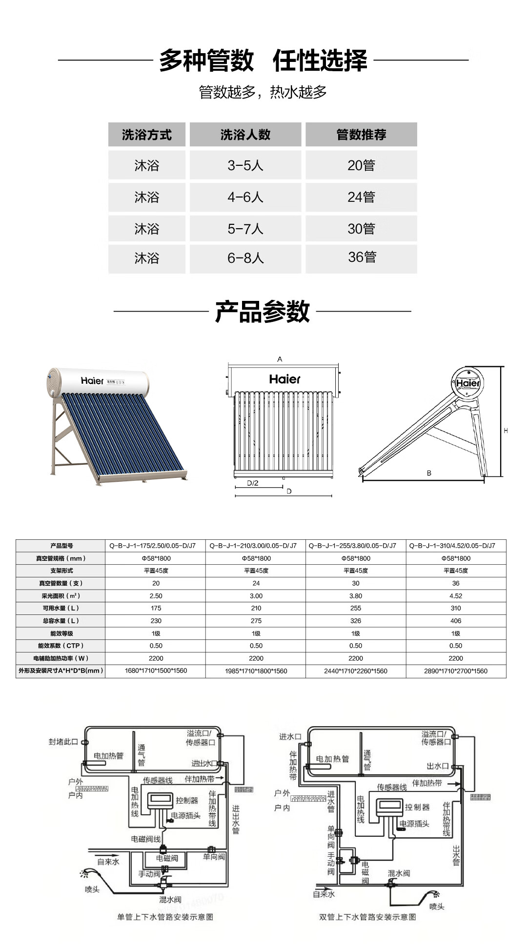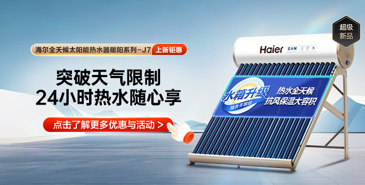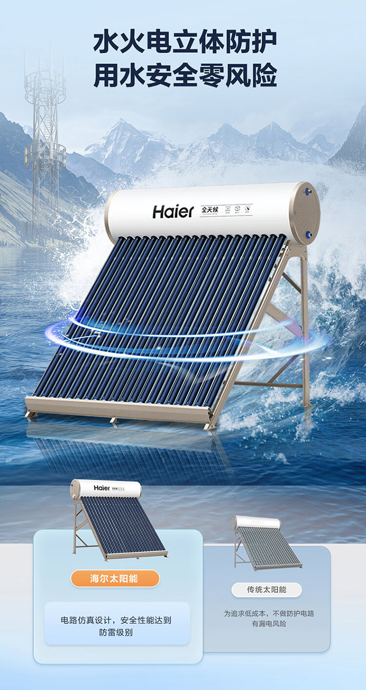 【下单前咨询库存】新品海尔(Haier)太阳能热水器家用一级能效自动定时上水 WIFI预约电辅加热 J7系列