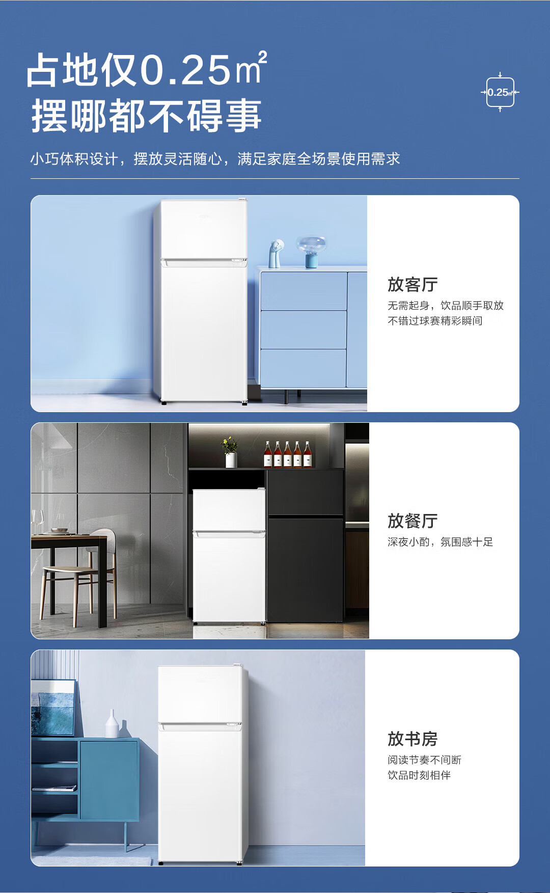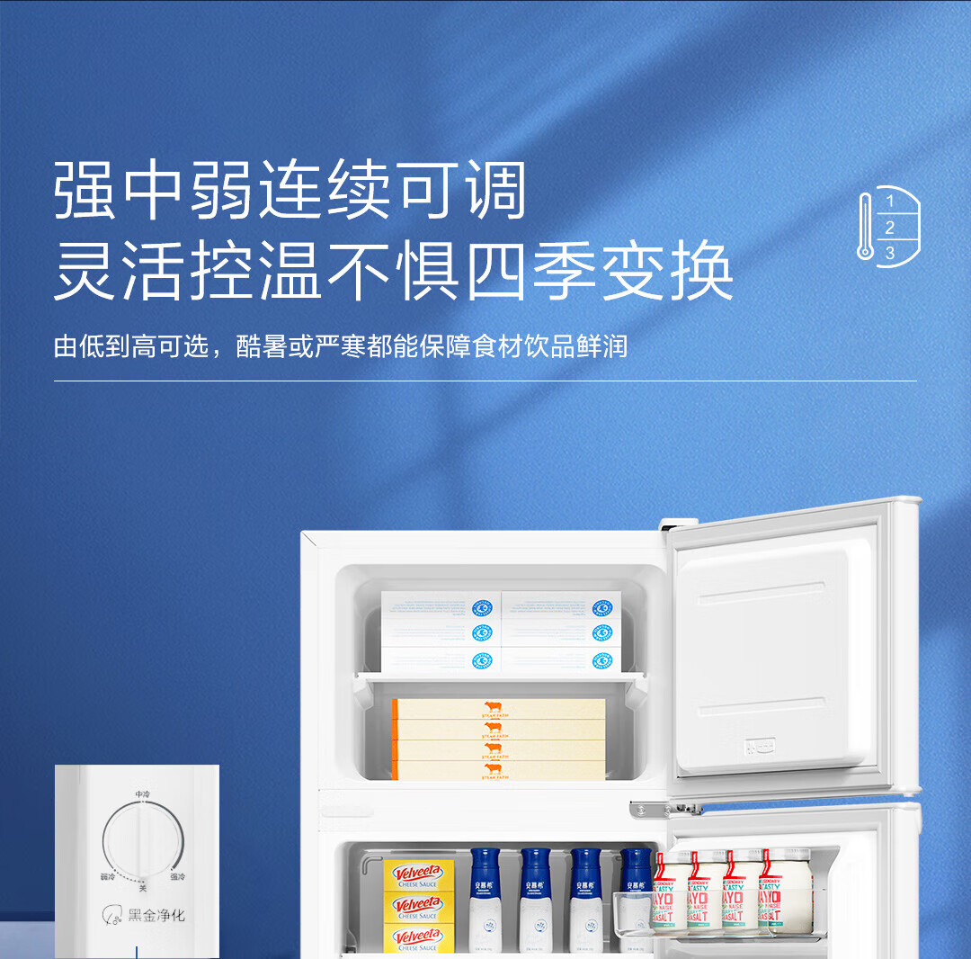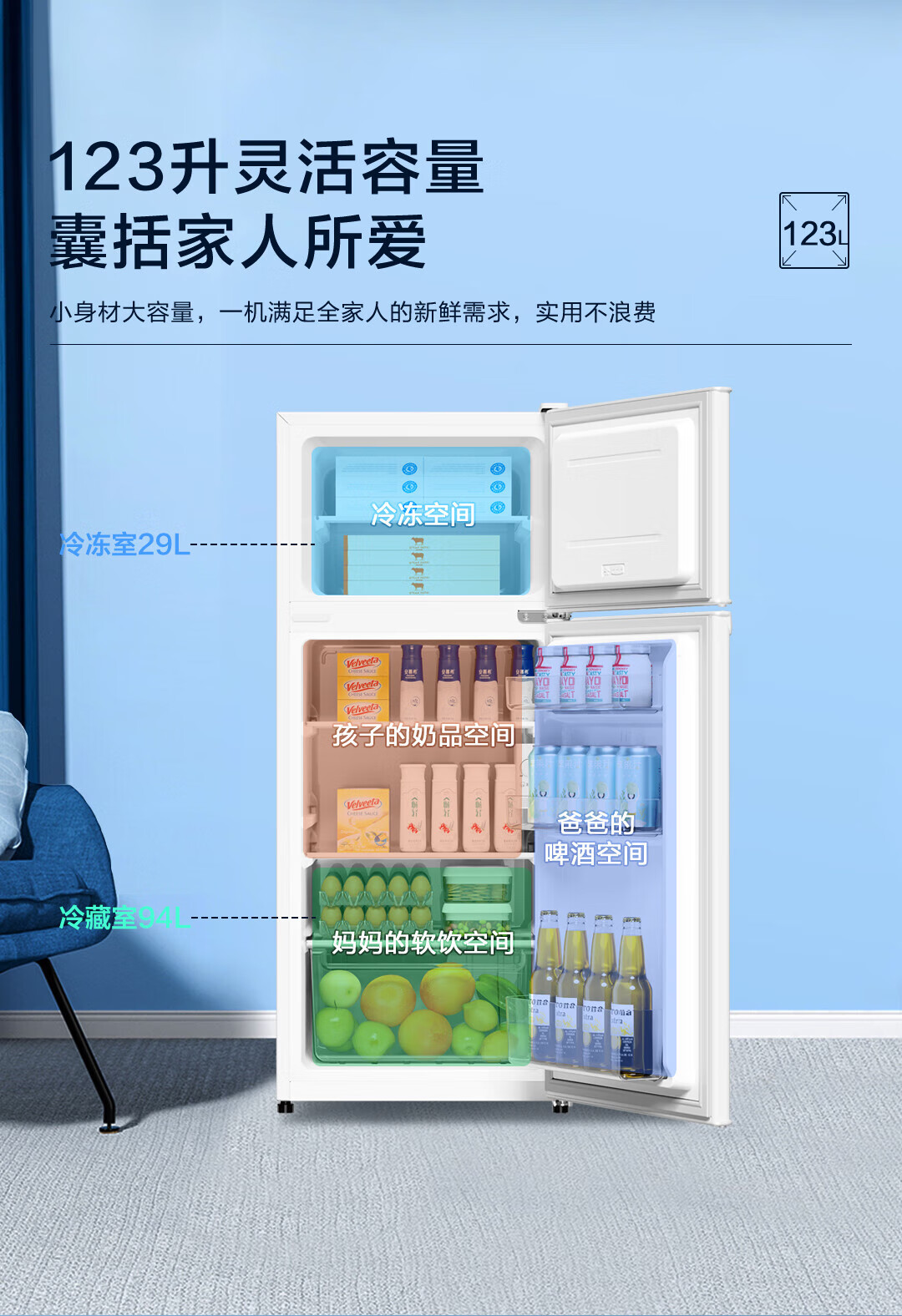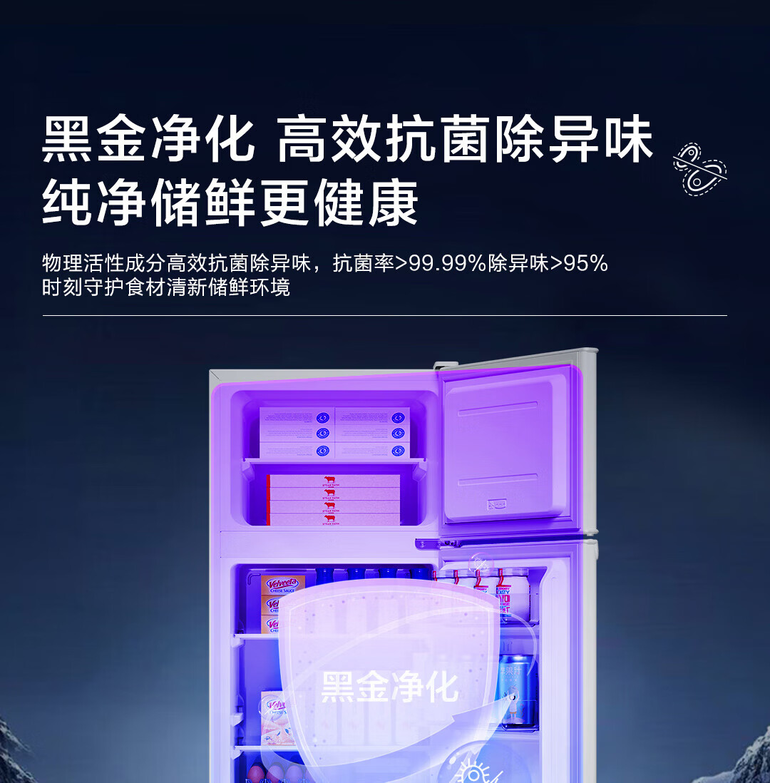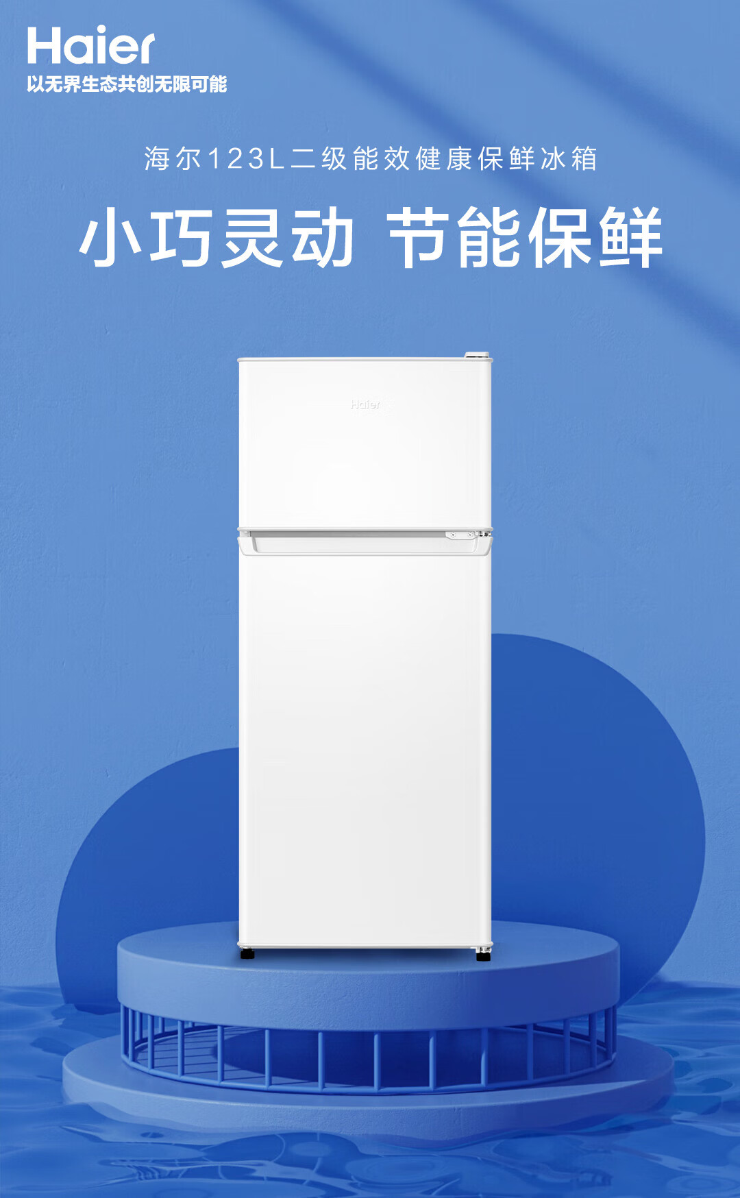 海尔冰箱小型123升家用家电超薄节能迷你智能新能效电冰箱 123升两门节能 黑金净化