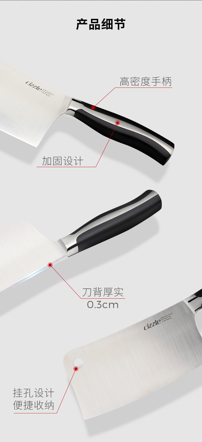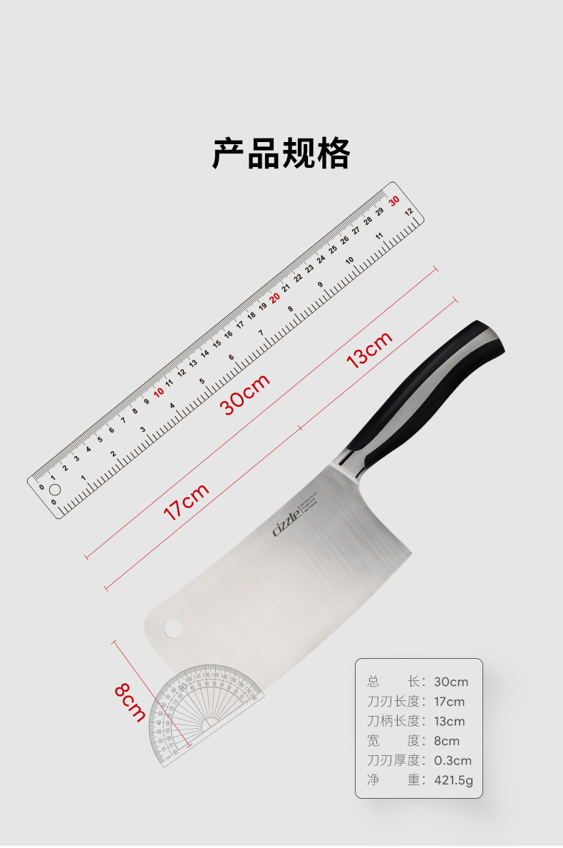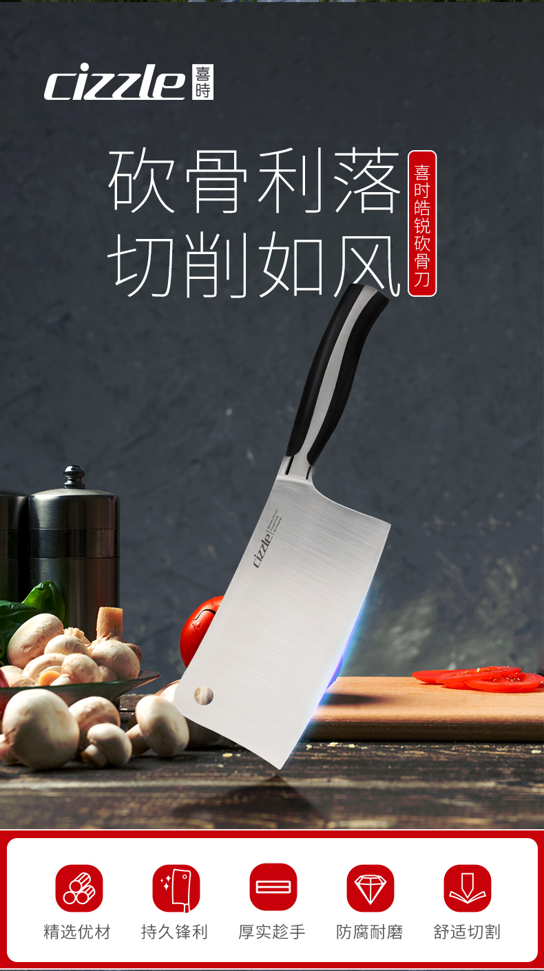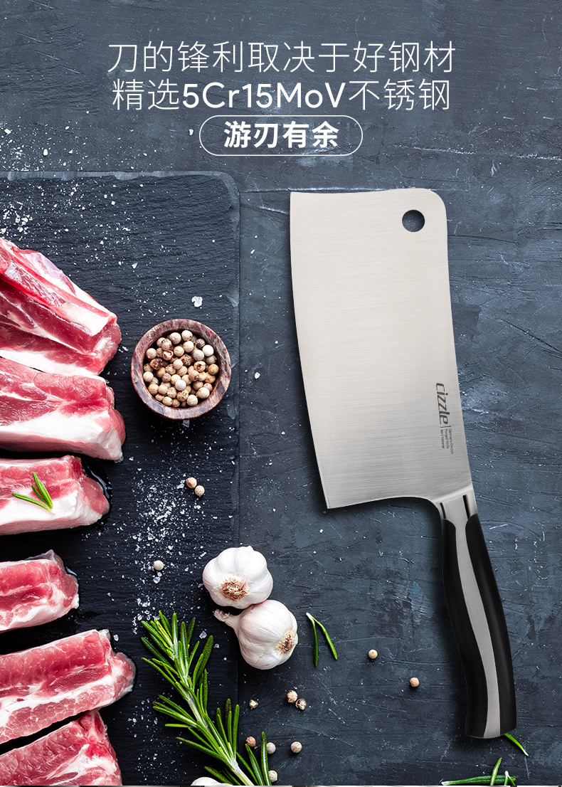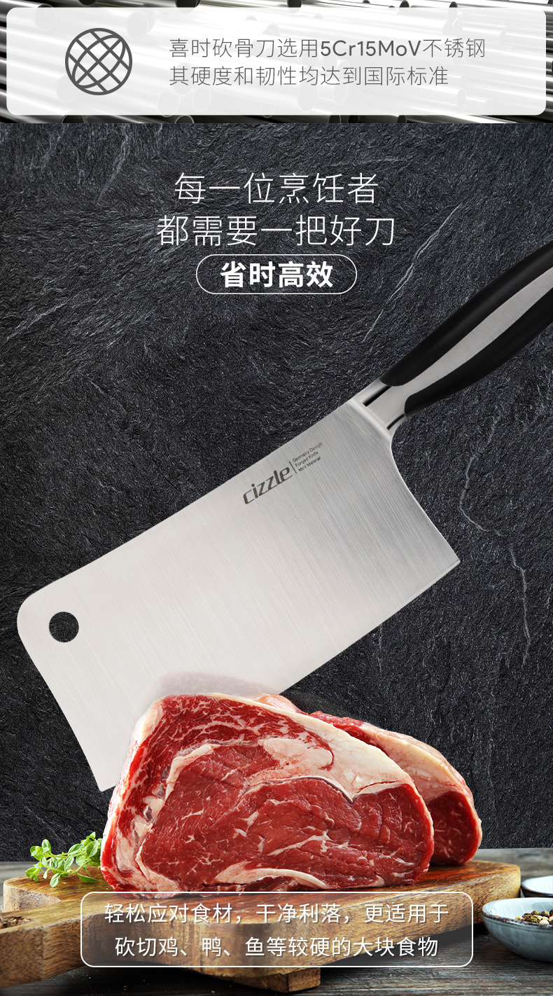cizzle喜时家用厨房刀具不锈钢斩骨砍骨刀厨师专用切肉切菜刀