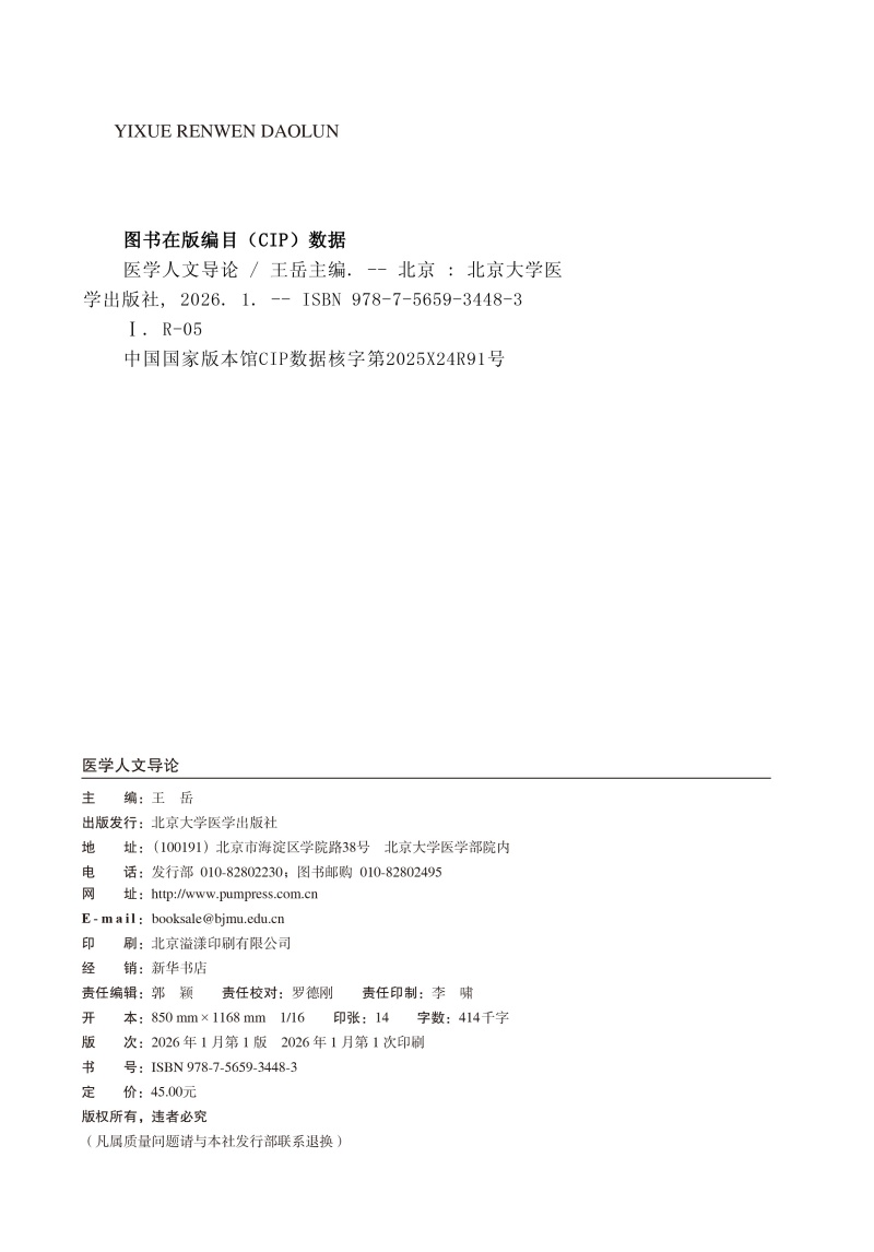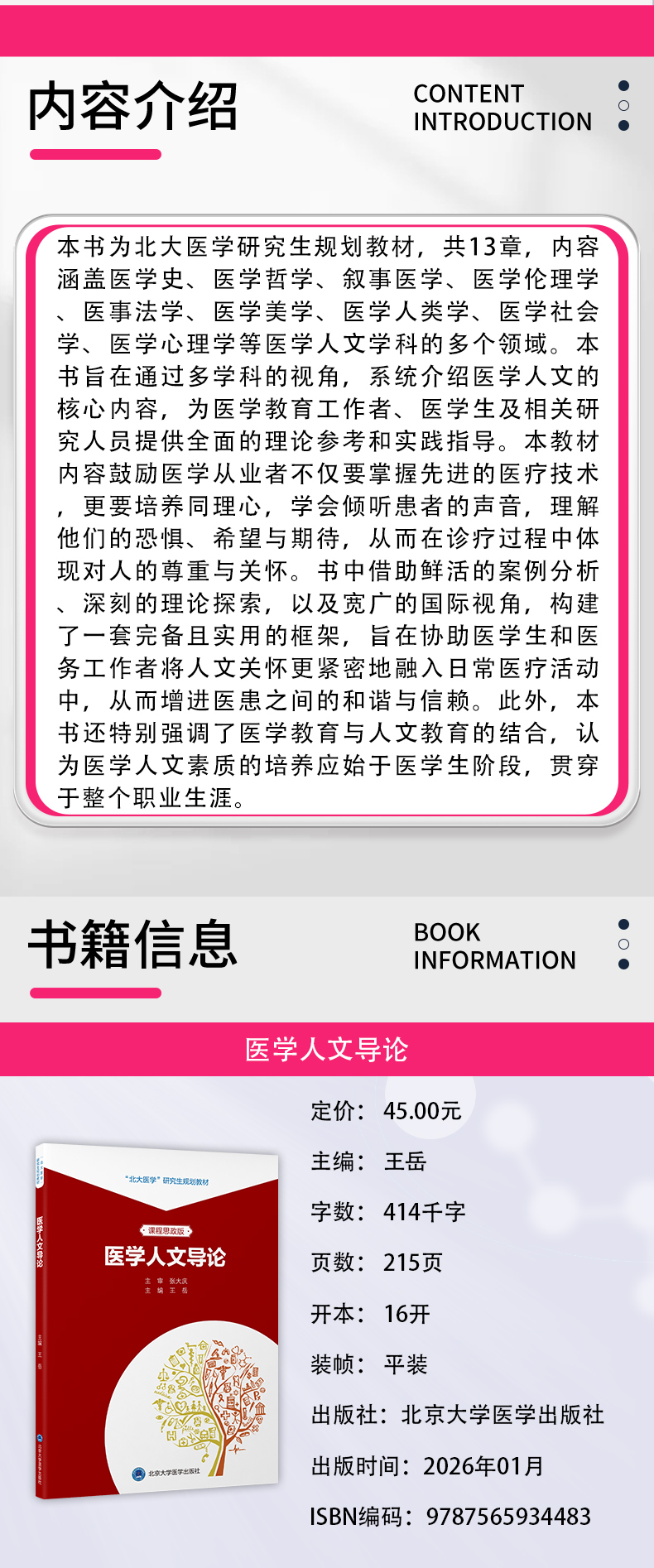 医学人文导论 北大医学研究生规划教材 课程思政版 王岳 主编 医学 人文科学 研究生 教材 9787565934483 北京大学医学出版社