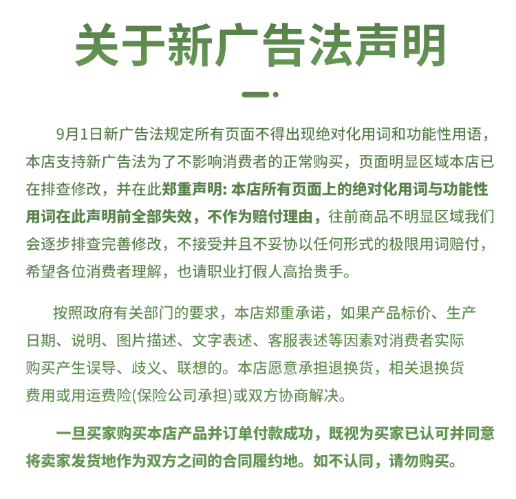 【售后标准】不影响二次销售支持7天无理由退换 非质量问题买家承担