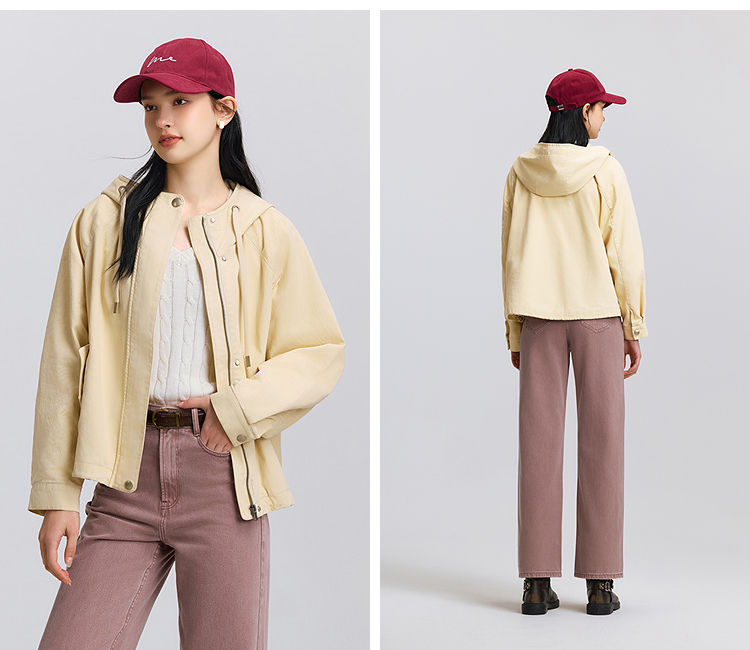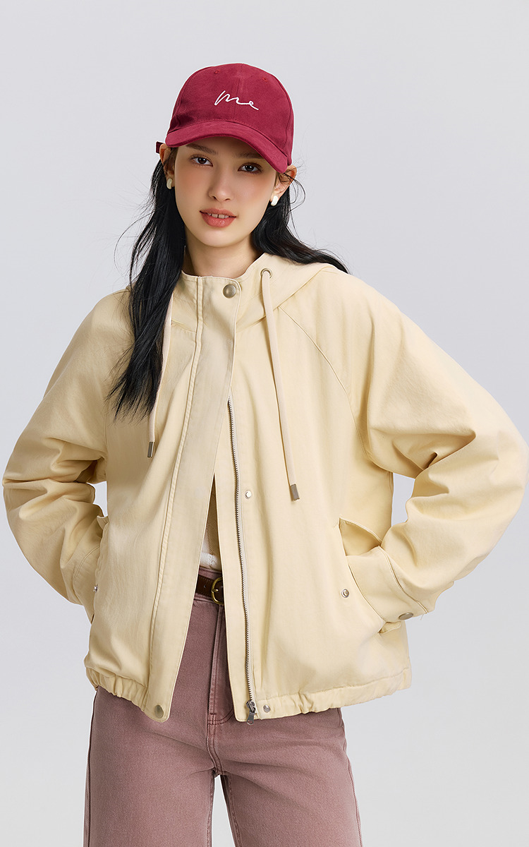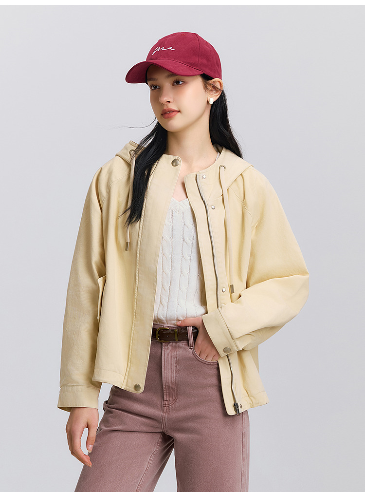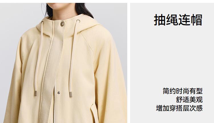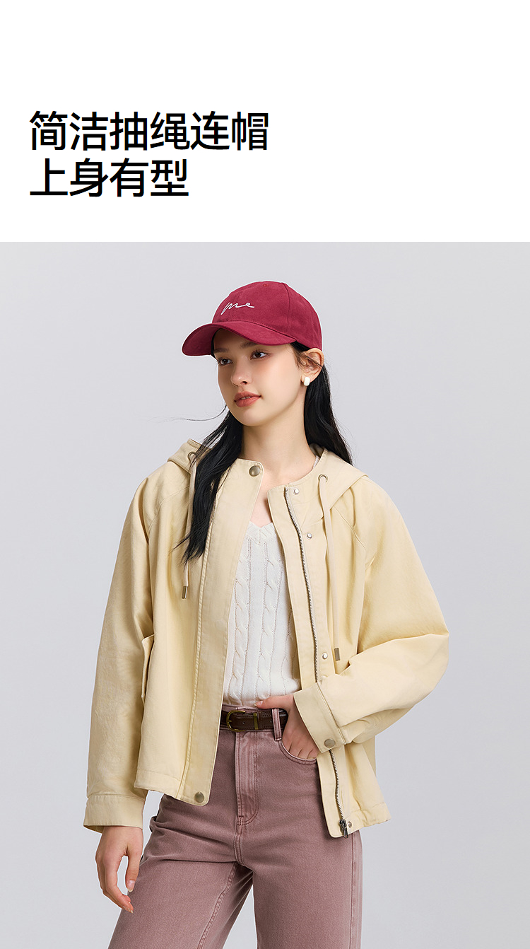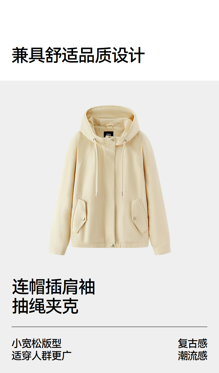 森马外套女春季连帽插肩袖宽松抽绳上衣简约时尚复古潮流潮酷夹克