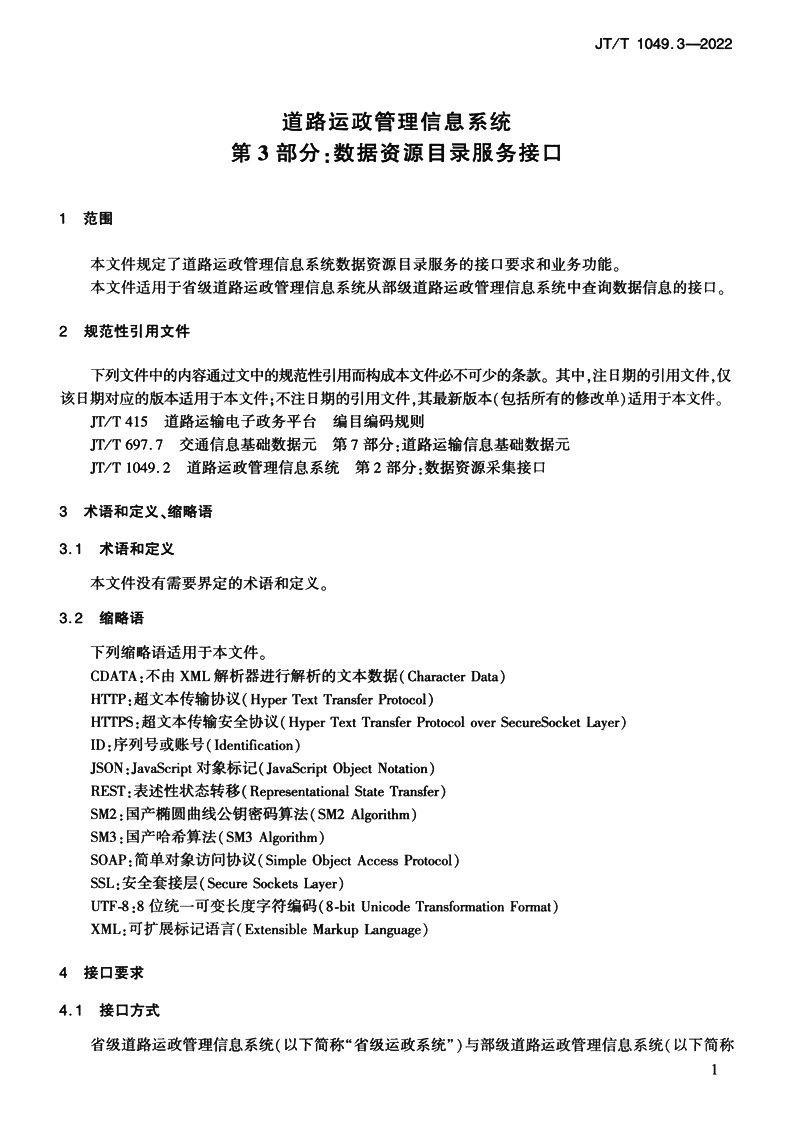 书名:道路运政管理信息系统 第3部分:数据资源目录服务接口(JT/T 1049.3—2022)