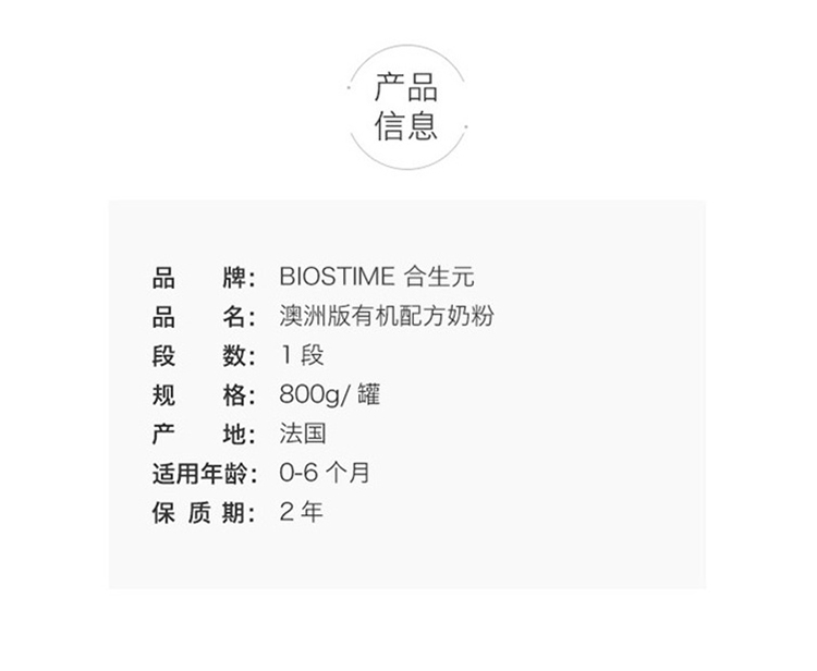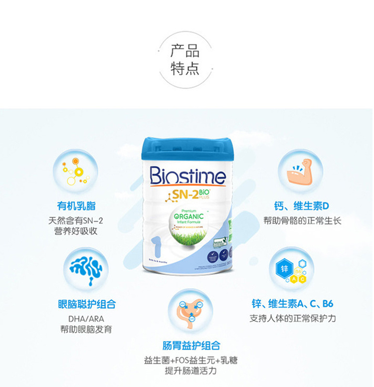 HNMG 澳洲版Biostime合生元蓝精灵有机配方奶粉 1段800g