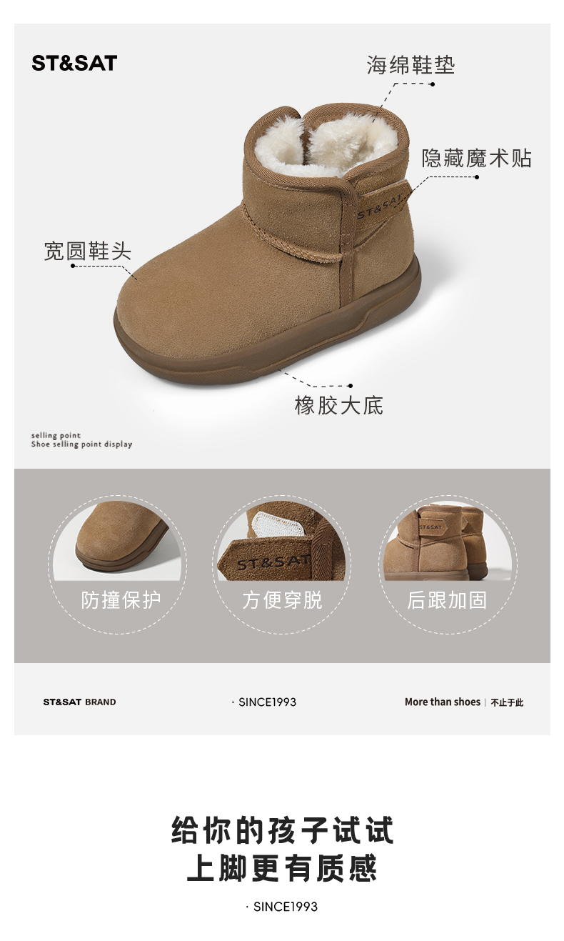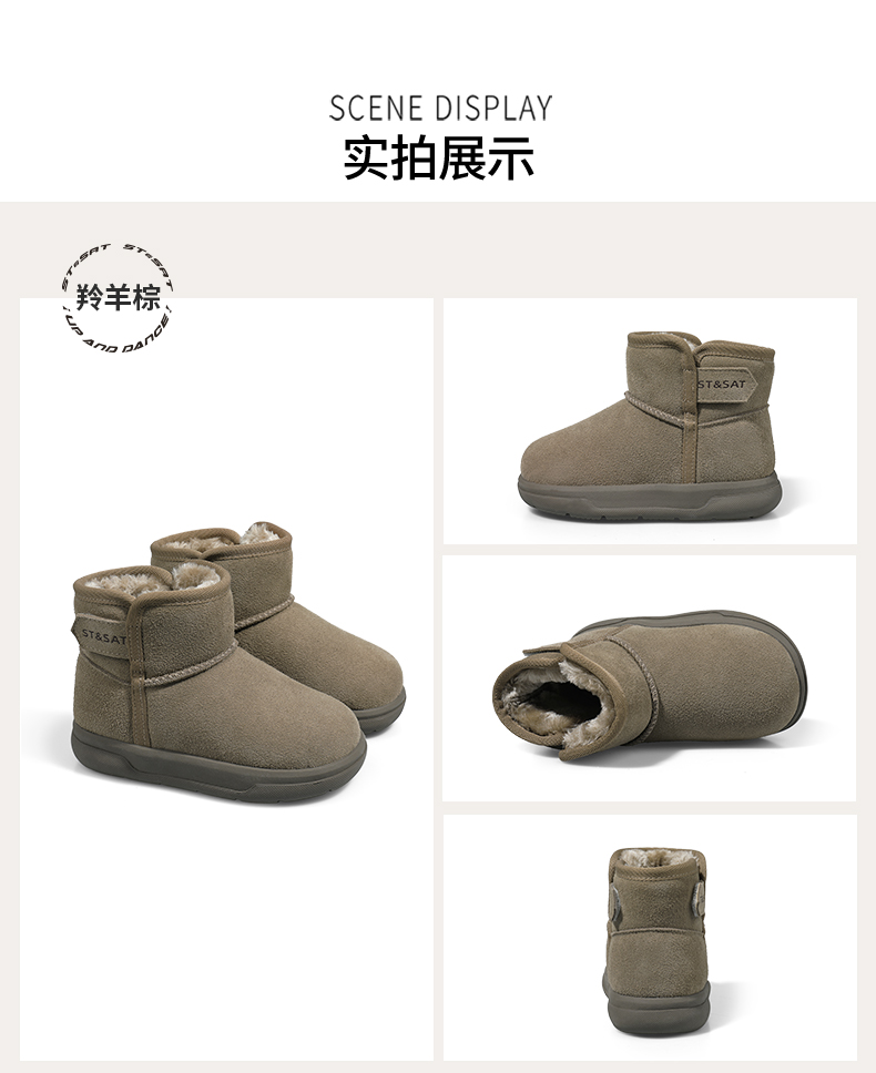 【童鞋】星期六经典百搭加绒保暖防滑男女童雪地靴SSC4198LBG