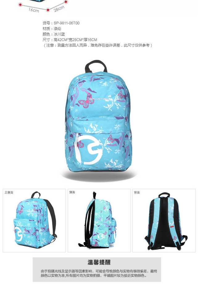 开学季送礼佳品 学生书包休闲包双肩包背包 儿童双肩书包SP-9811-06T00
