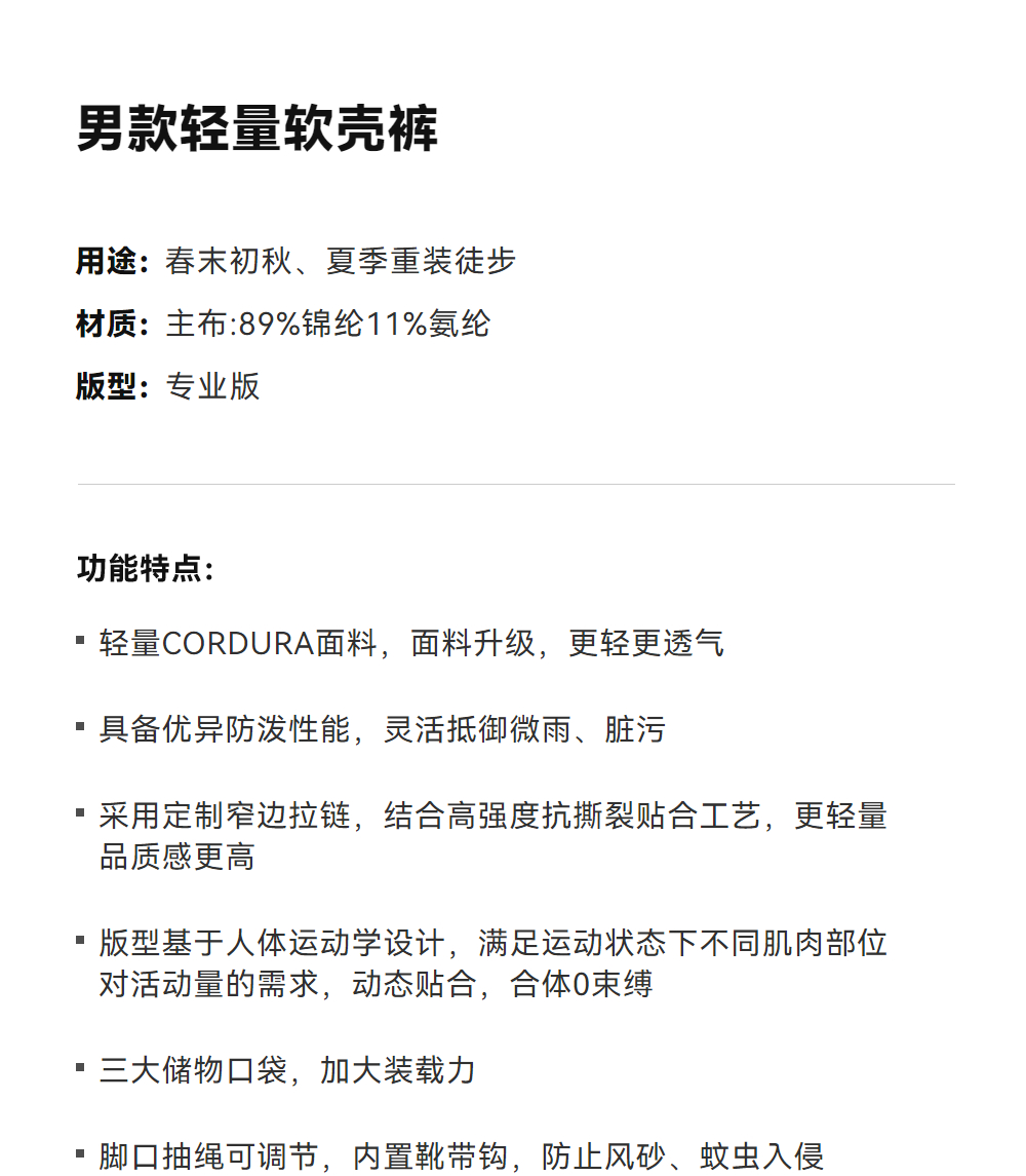 KAILAS凯乐石 男款轻量软壳裤 KG2519303