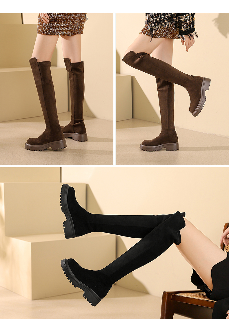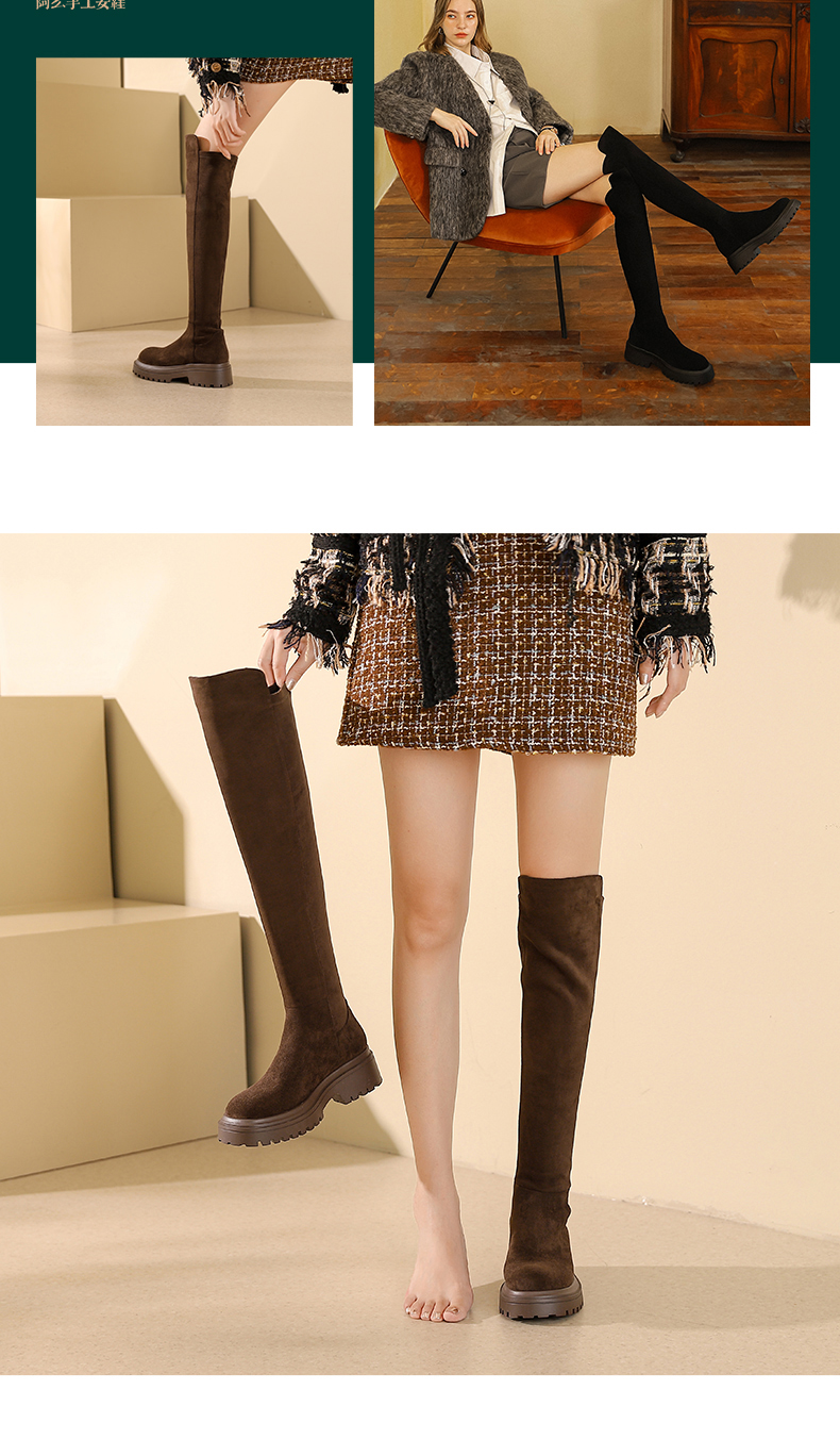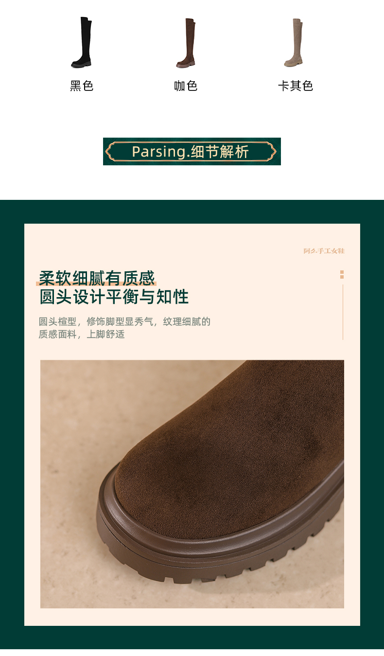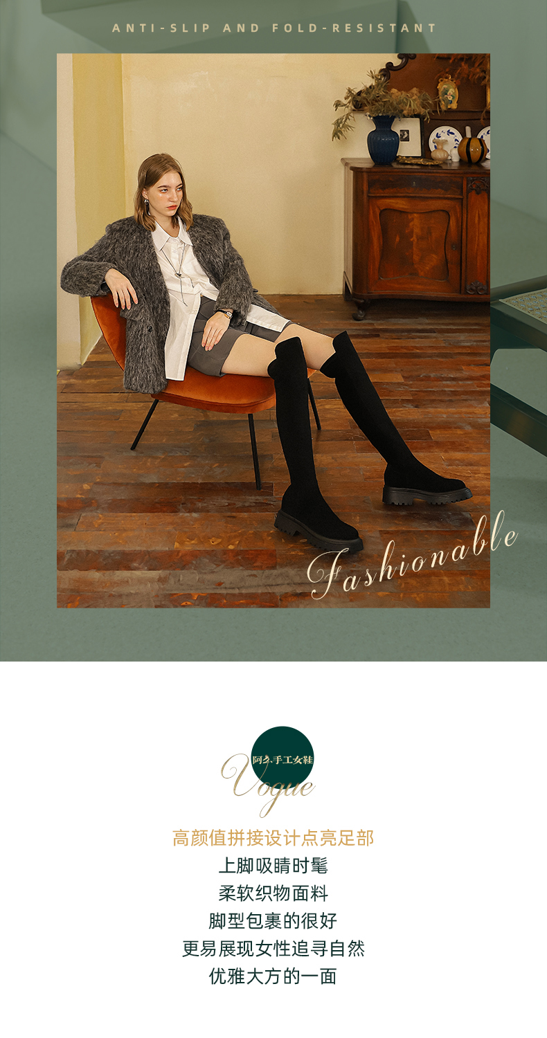 阿么手工女鞋5cm新款时尚过膝长靴女显瘦厚底高筒靴子长筒秋冬