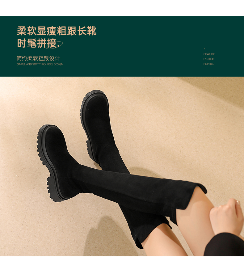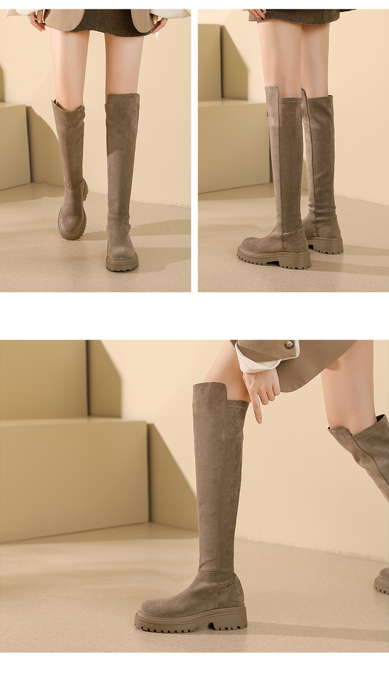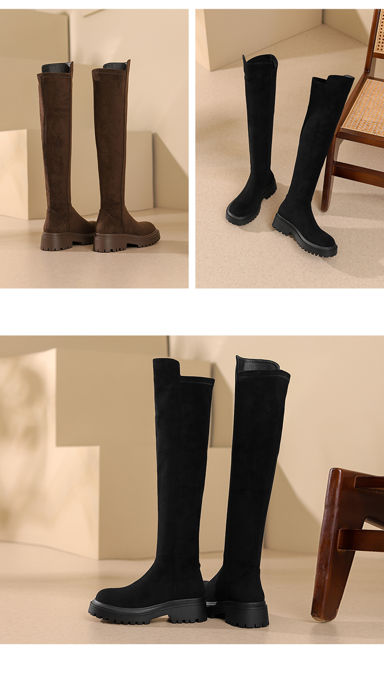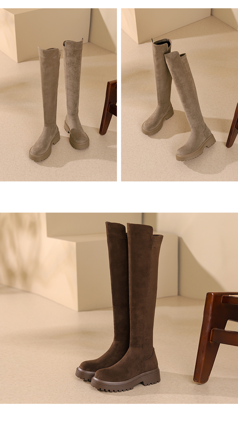 阿么手工女鞋5cm新款时尚过膝长靴女显瘦厚底高筒靴子长筒秋冬