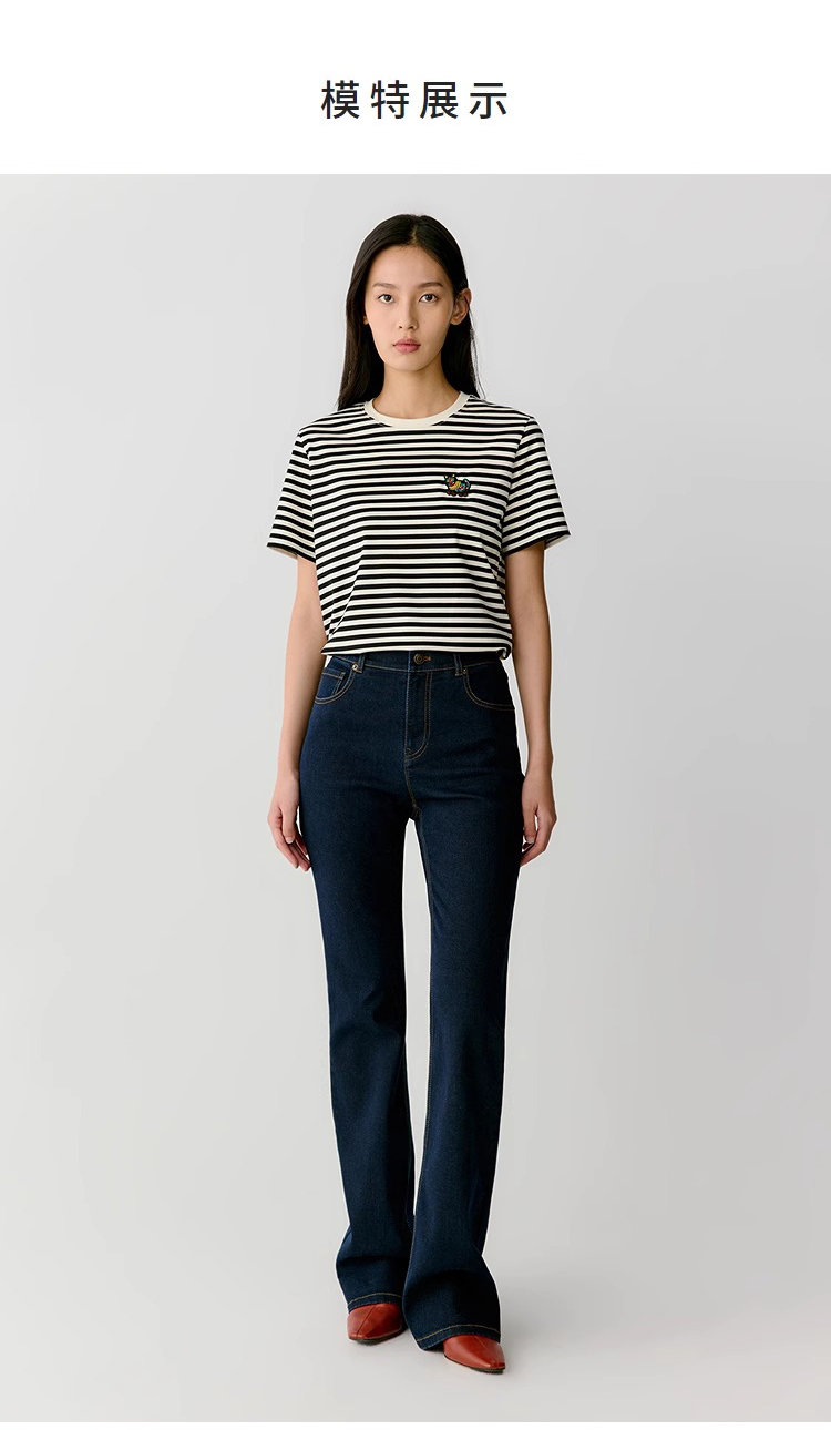 时髦廓形微喇牛仔裤舒适干爽面料触感
