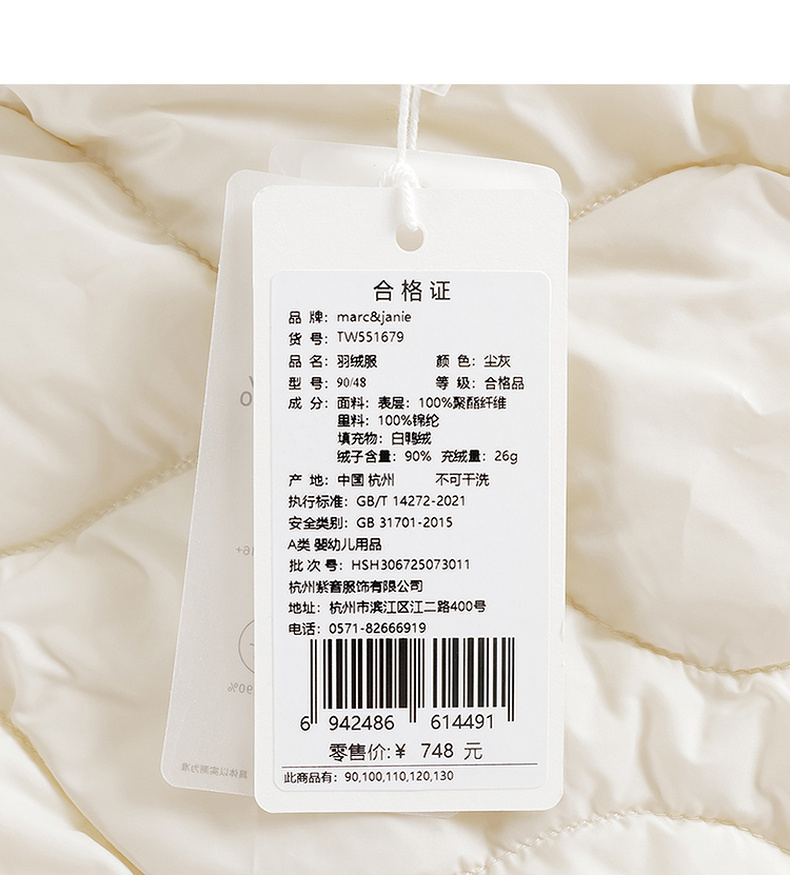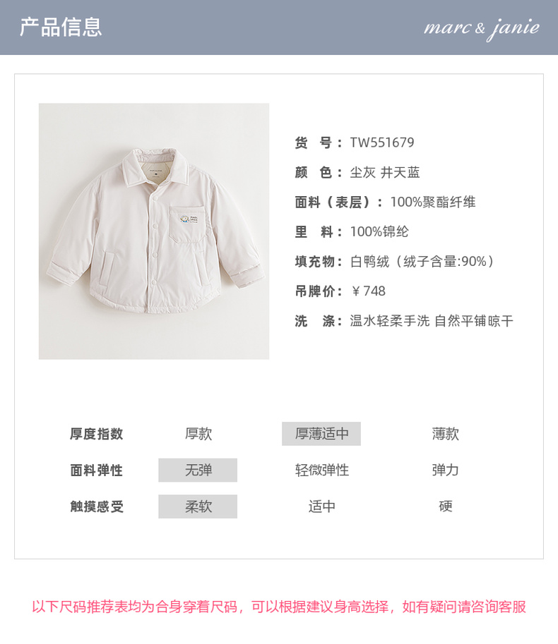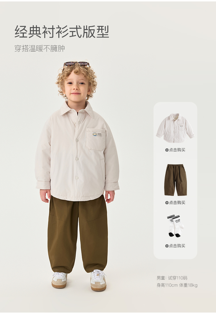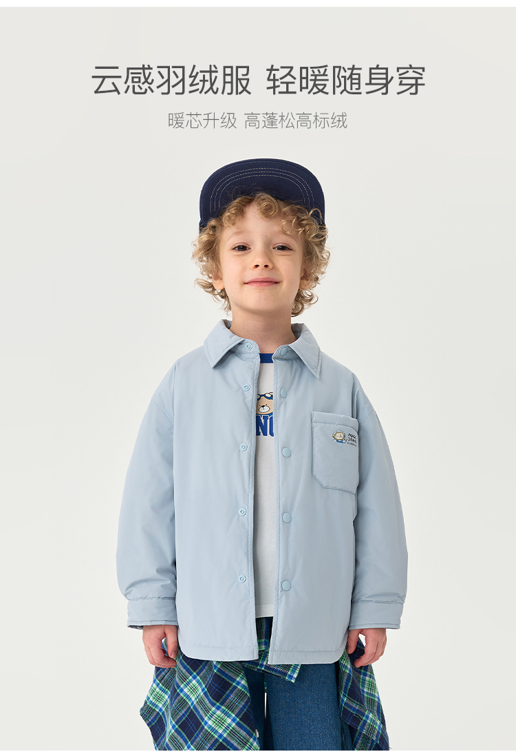 【无氟防泼水】马克珍妮男童超轻保暖衬衫领羽绒服2025年冬装新款551679