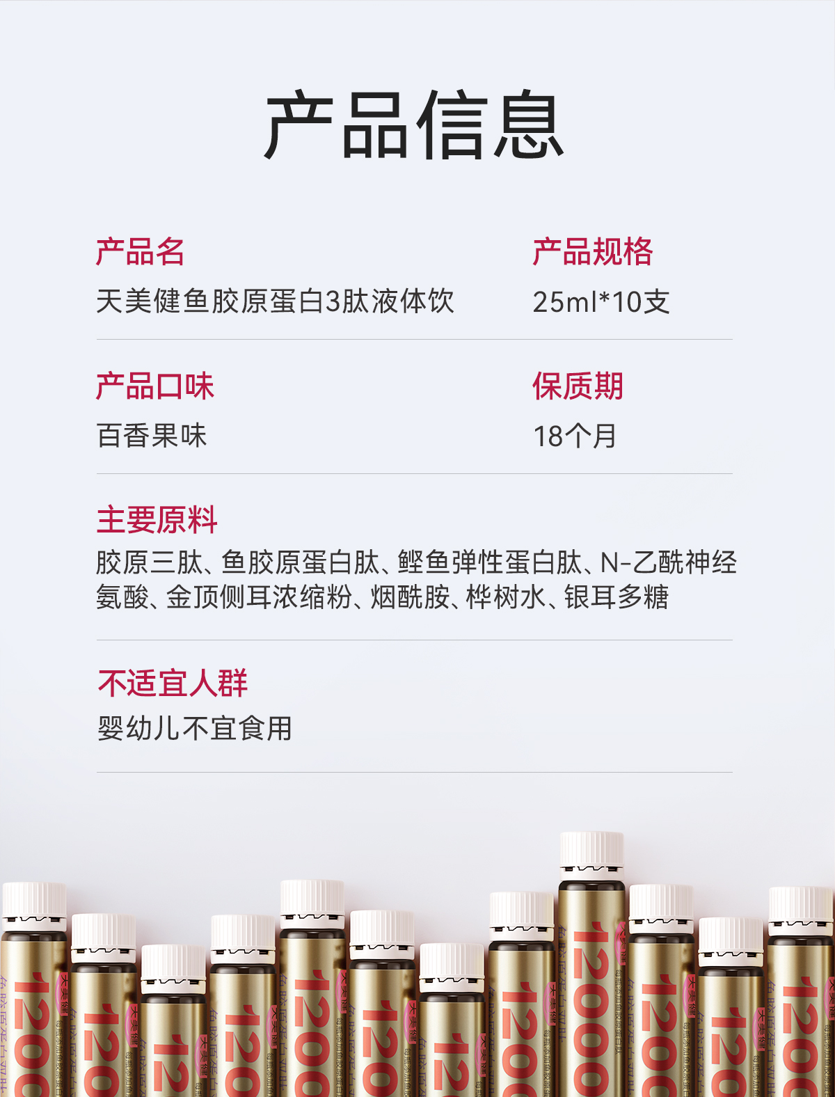【天美健好孕帮专属】鱼胶原蛋白3肽液体饮(25ml*10)
