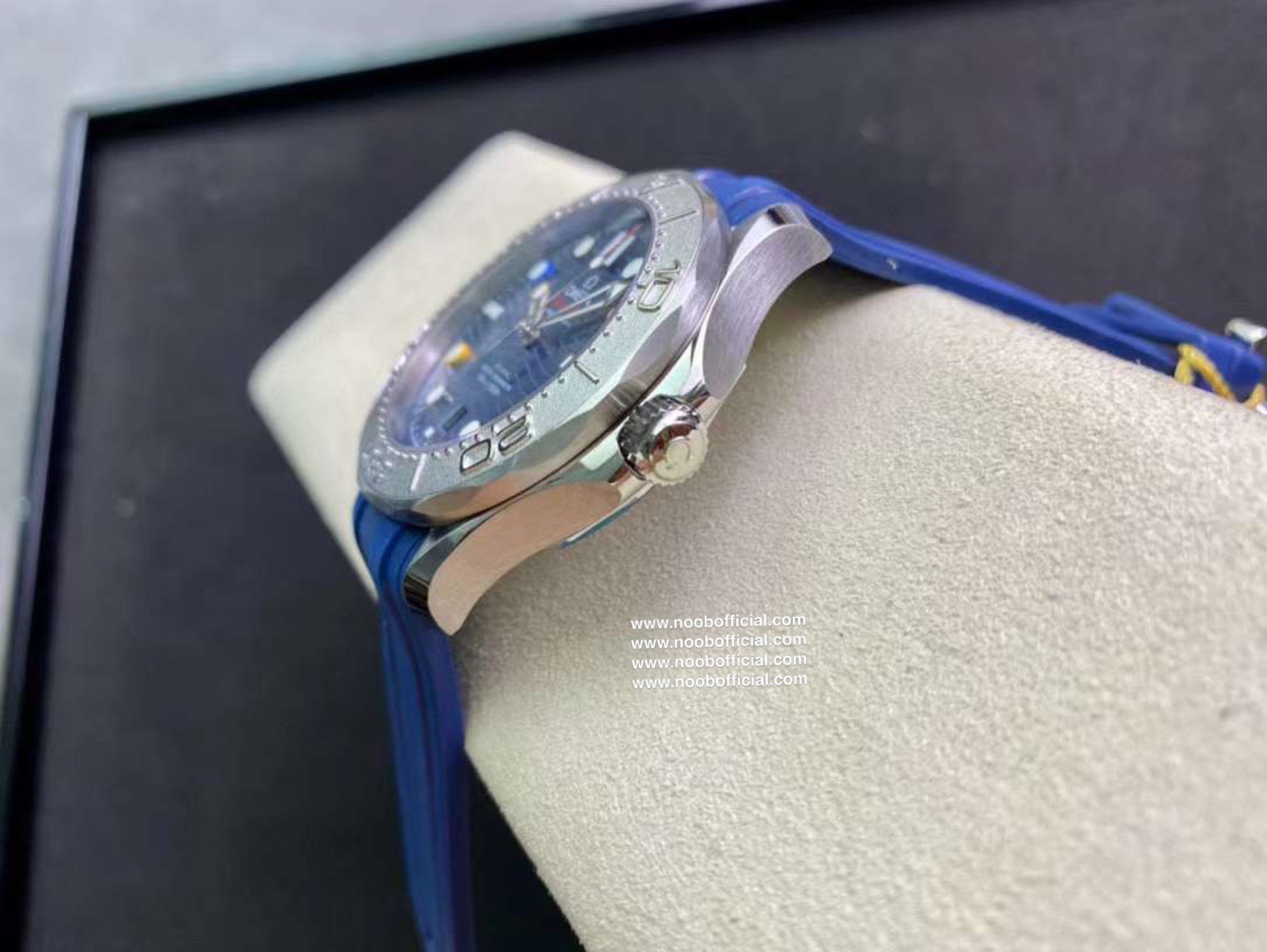 新作依然采用42mm 精钢表壳,钛金属表圈浮雕潜水刻度,呈现磨砂般的独特质感。蓝色陶瓷表盘契合冬奥会「冰雪」主题,经过日晖纹打磨,装饰激光雕刻的波浪纹饰。搭载OR厂独家研发定制复刻8800一体机芯。