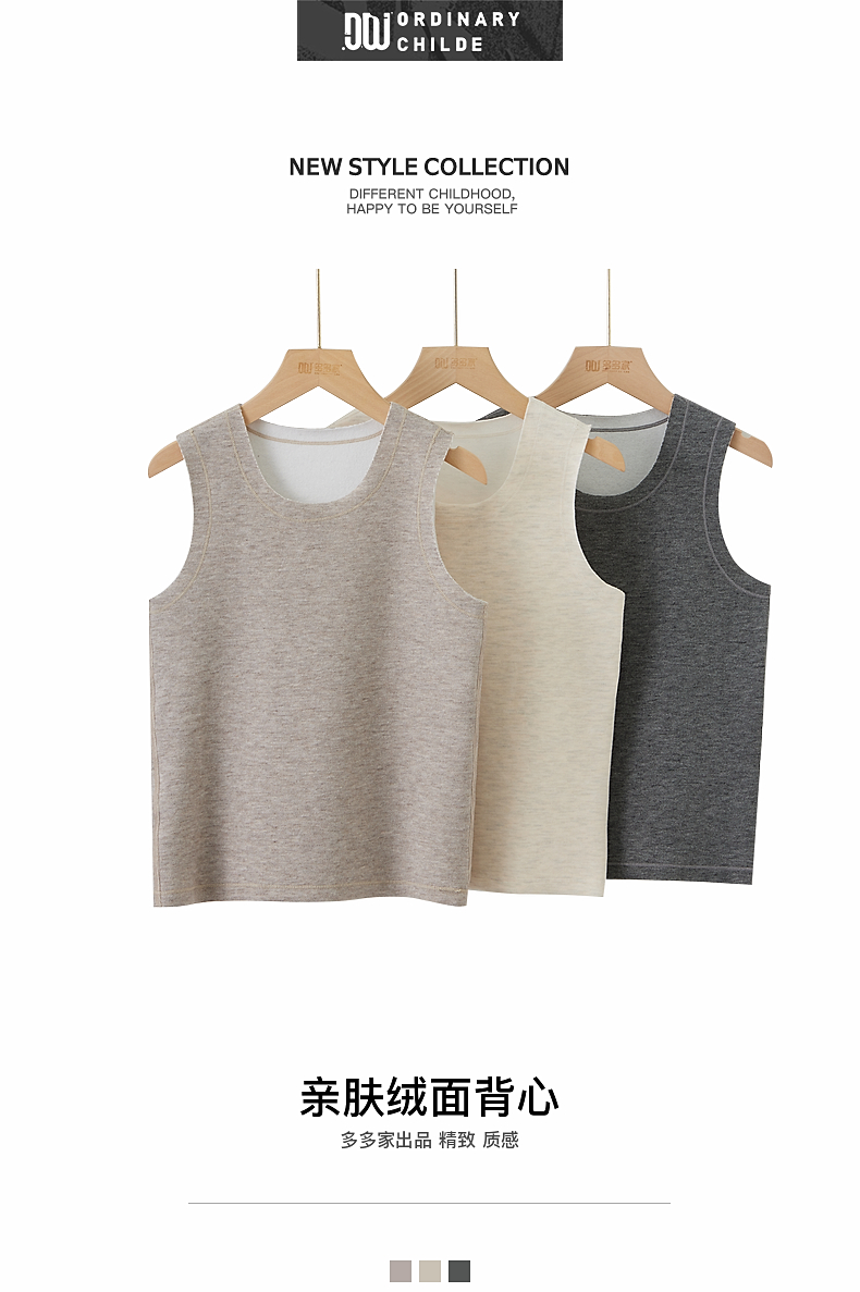 【团购价29.9】多多家男童背心加绒秋冬款2024新款儿童中大童内搭无袖T恤冬装潮10078