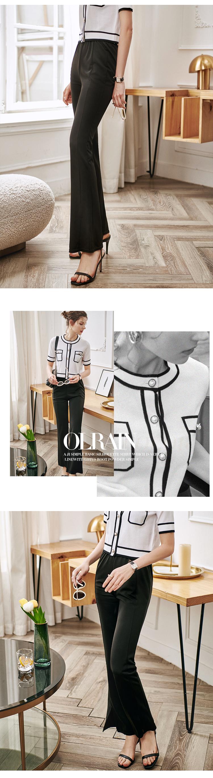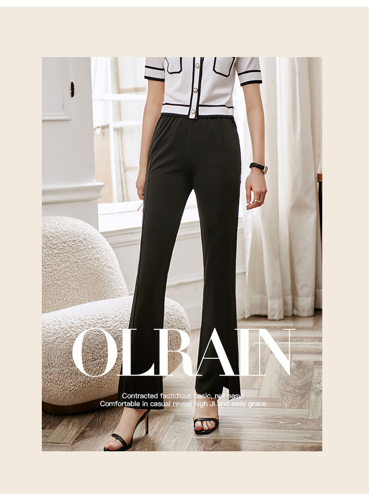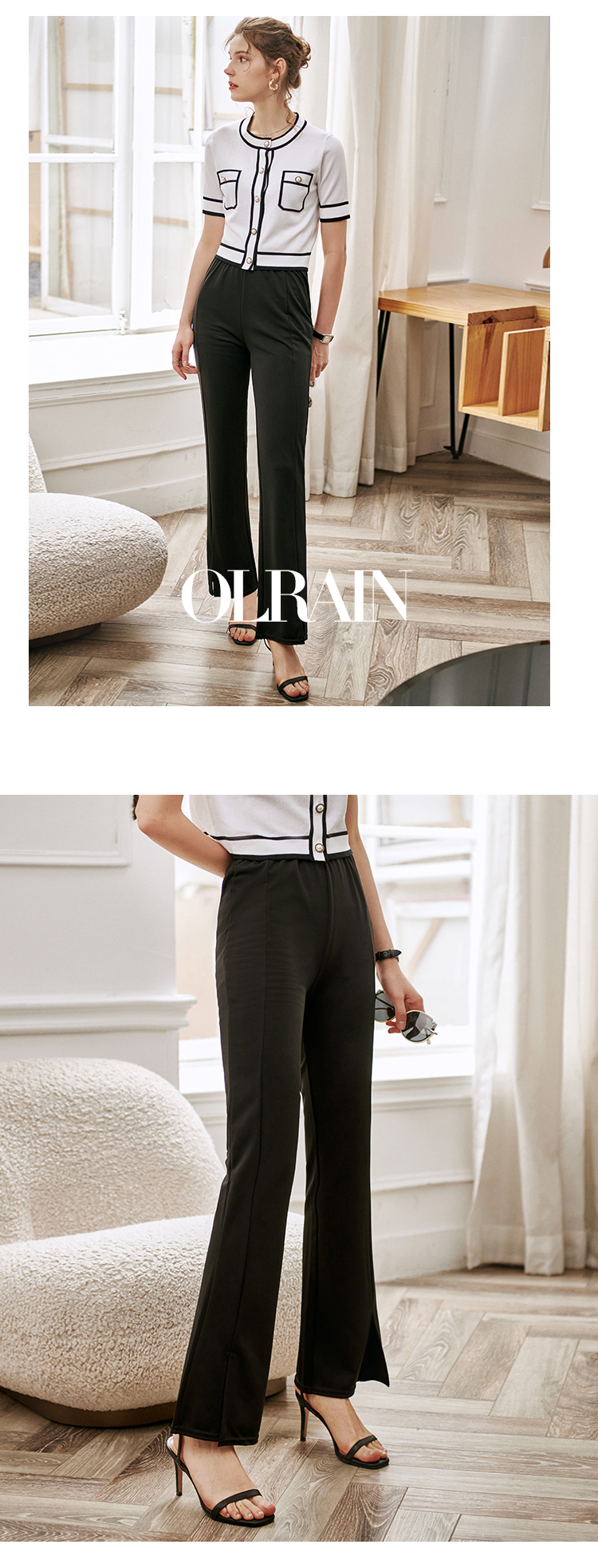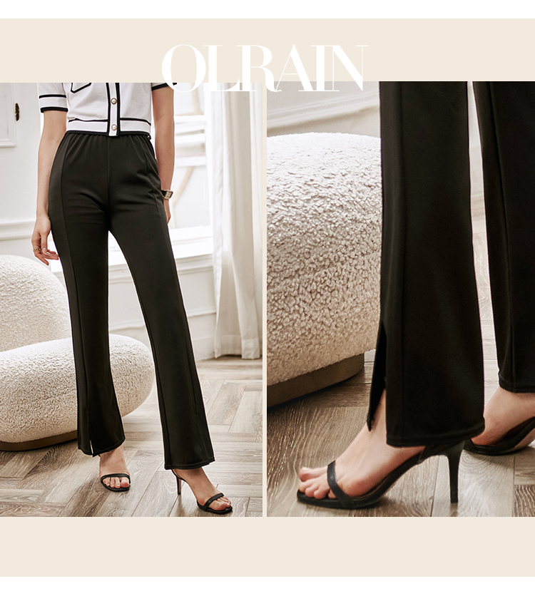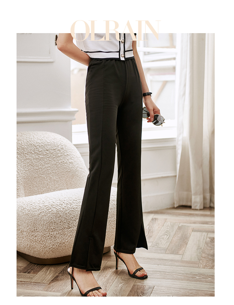 欧芮儿黑色休闲裤女夏新款2021修身显瘦时髦气质优雅开叉微喇叭裤
