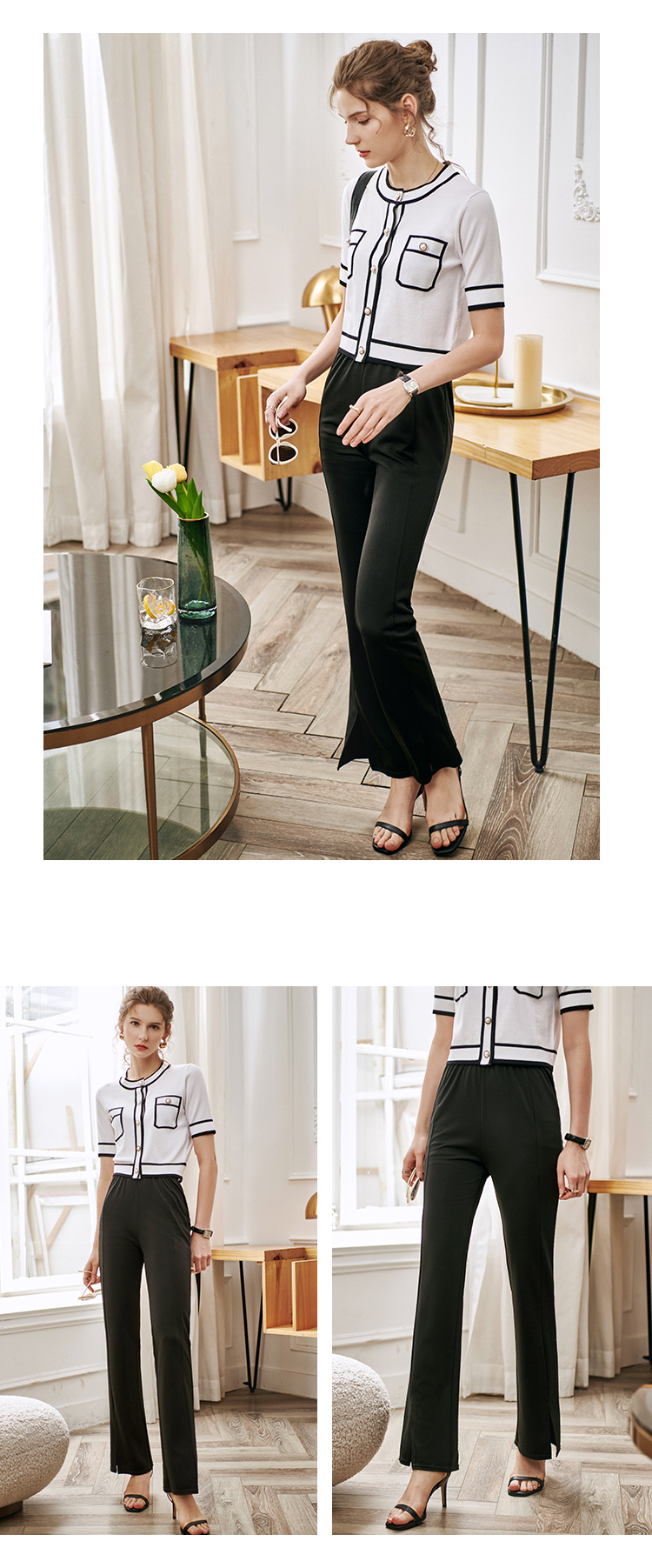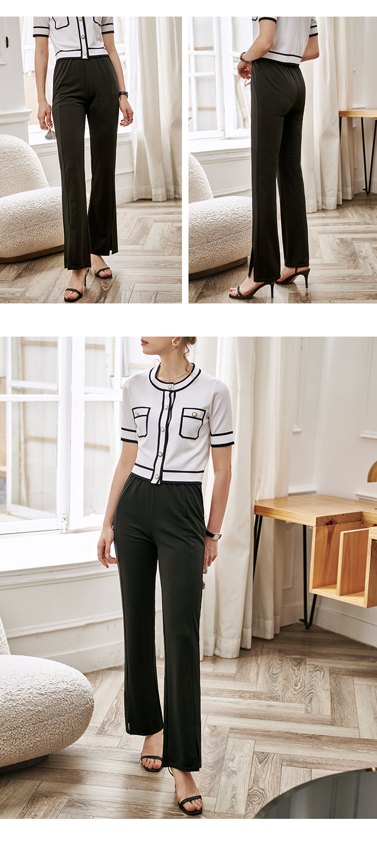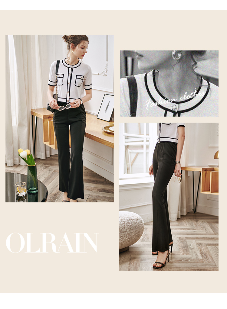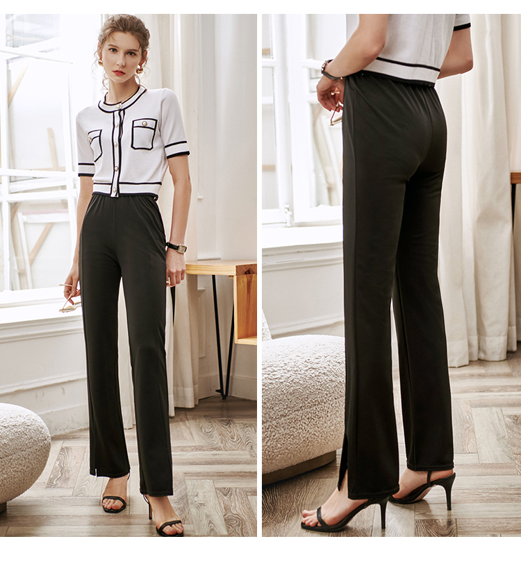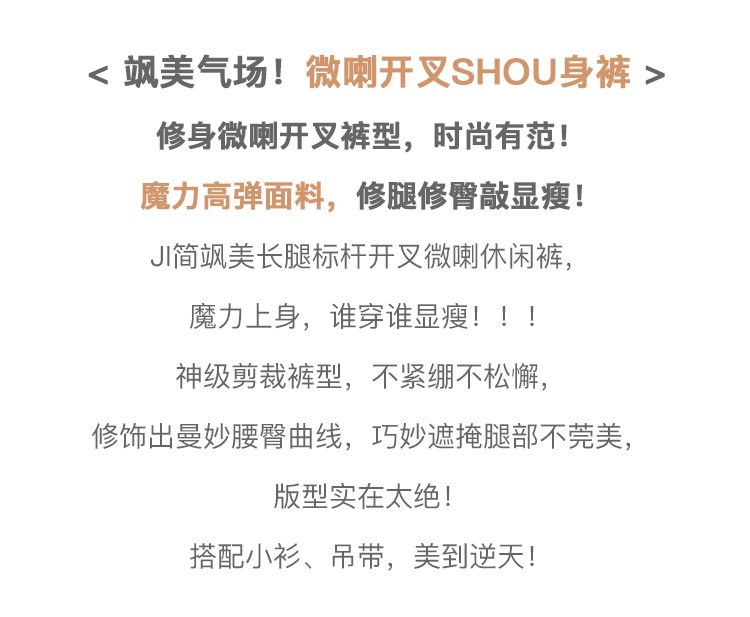 欧芮儿黑色休闲裤女夏新款2021修身显瘦时髦气质优雅开叉微喇叭裤