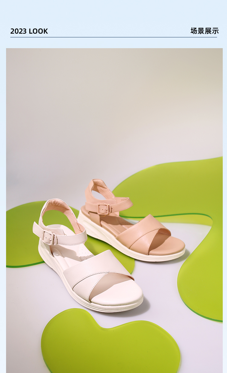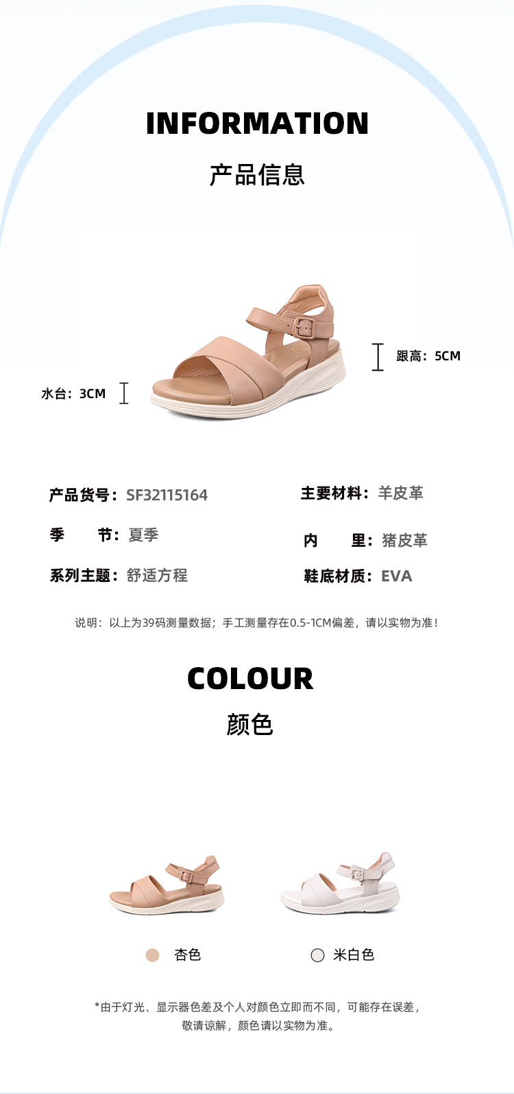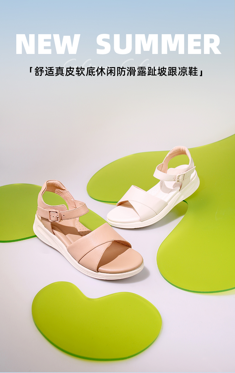 Safiya/索菲娅2023新品夏季舒适真皮软底休闲防滑露趾坡跟凉鞋 SF32115164