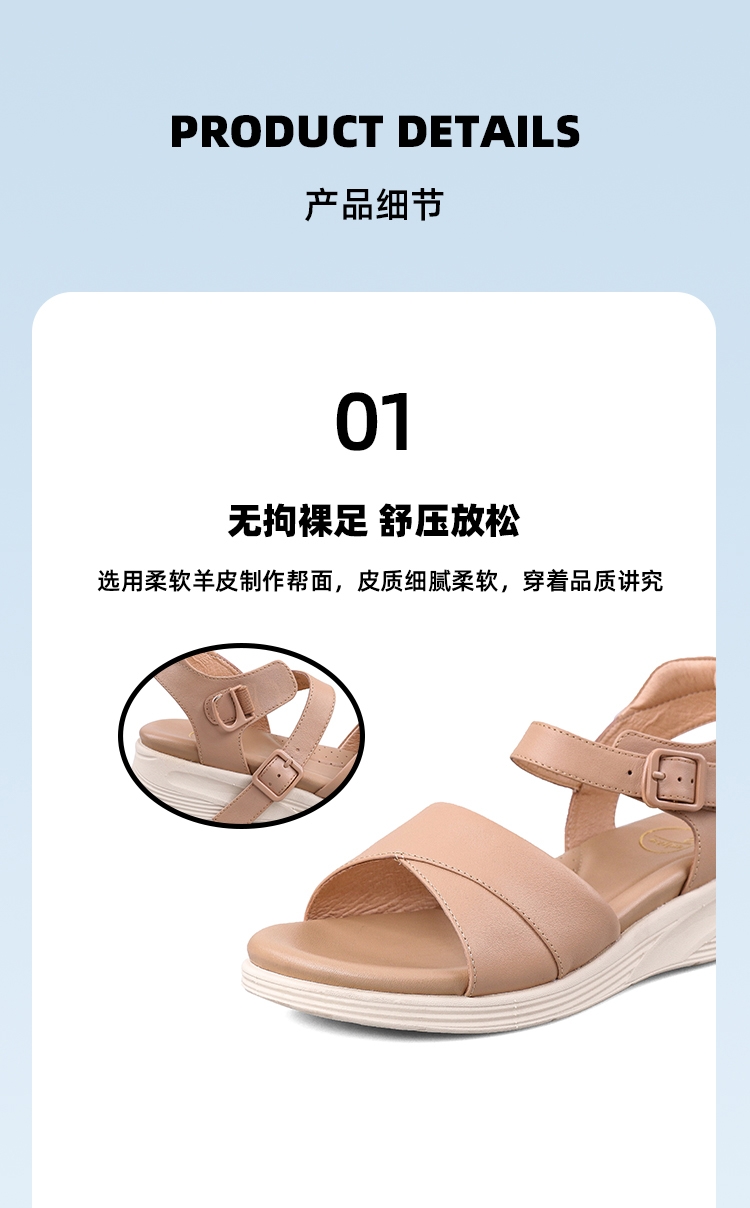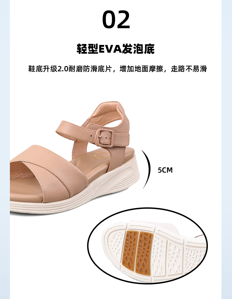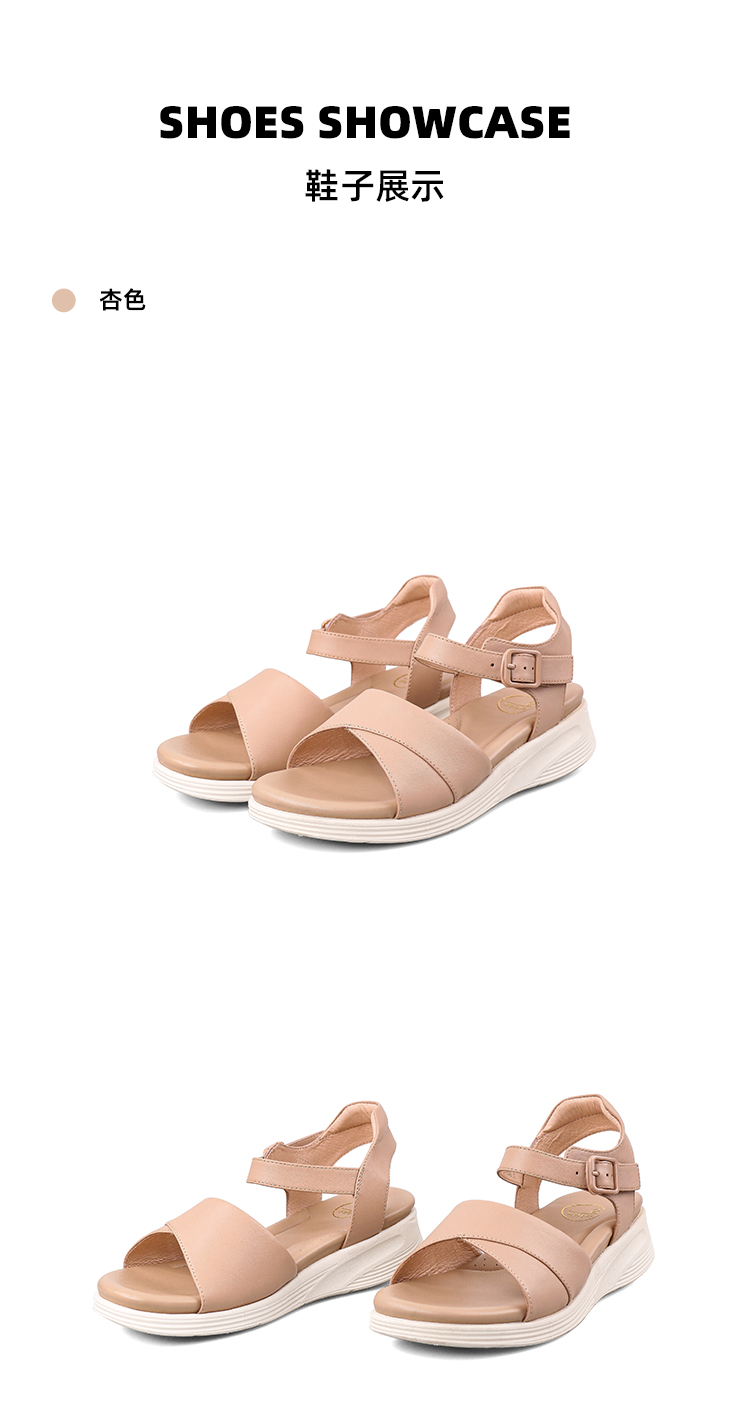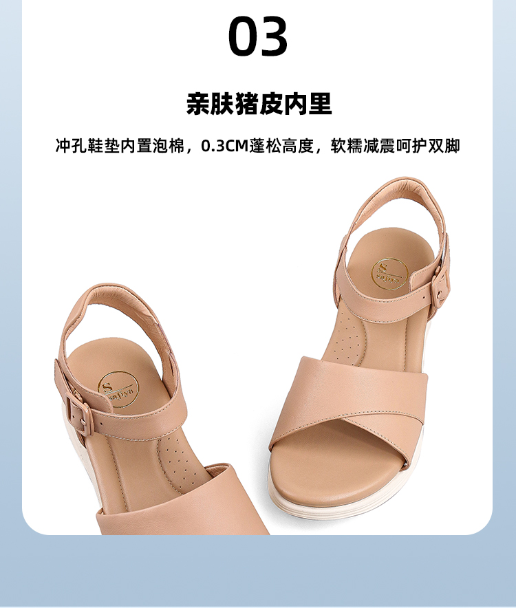 Safiya/索菲娅2023新品夏季舒适真皮软底休闲防滑露趾坡跟凉鞋 SF32115164