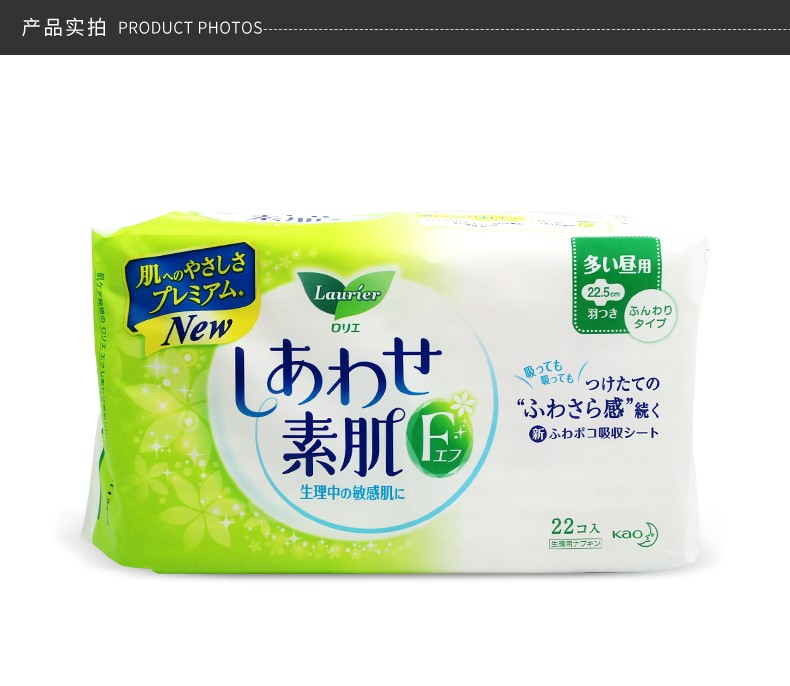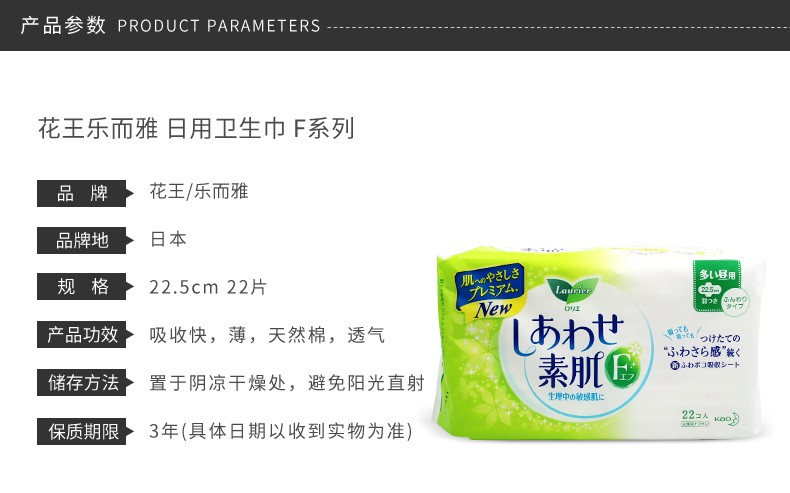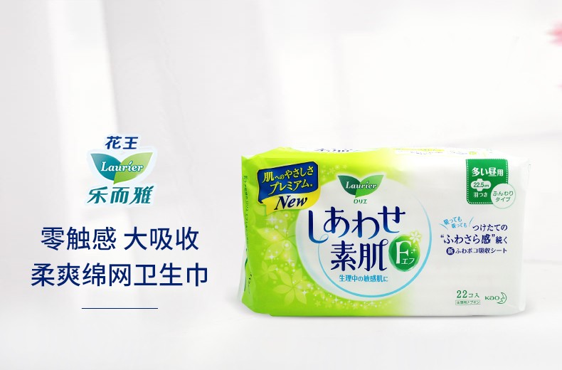 LAURÍER/乐而雅 F系列棉柔卫生巾 日用 无护翼白底绿花 22.5CM*2JPY带授权招加盟代理