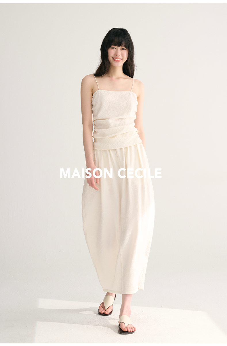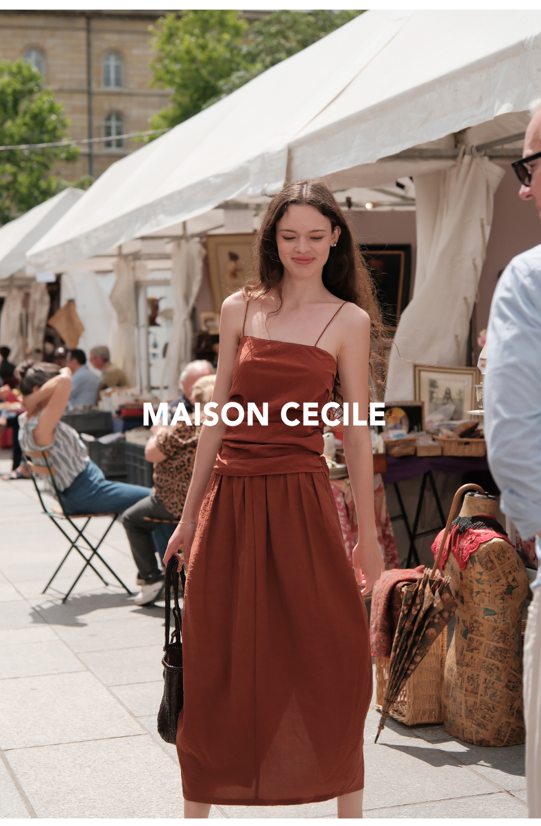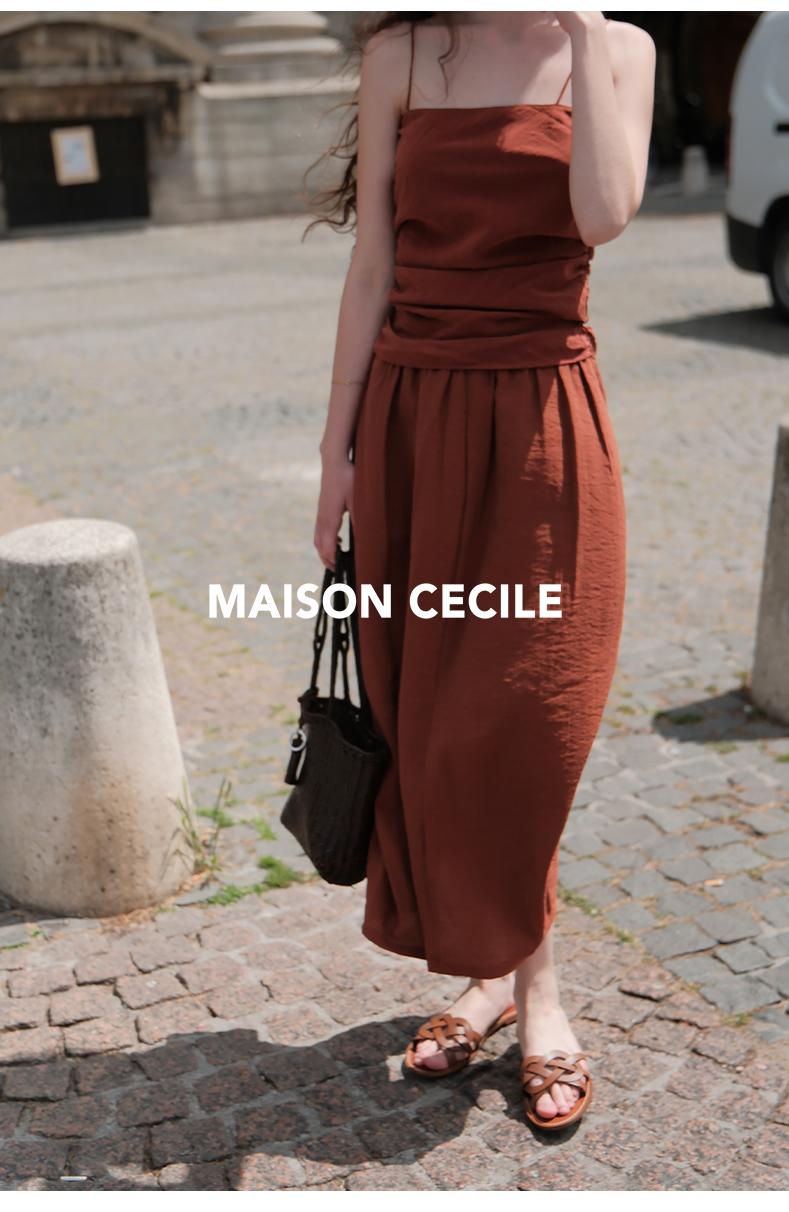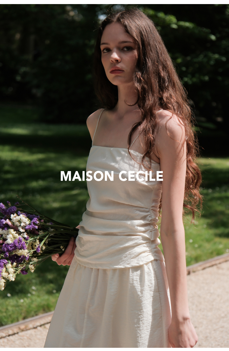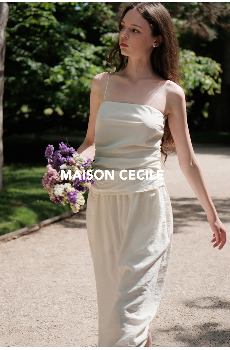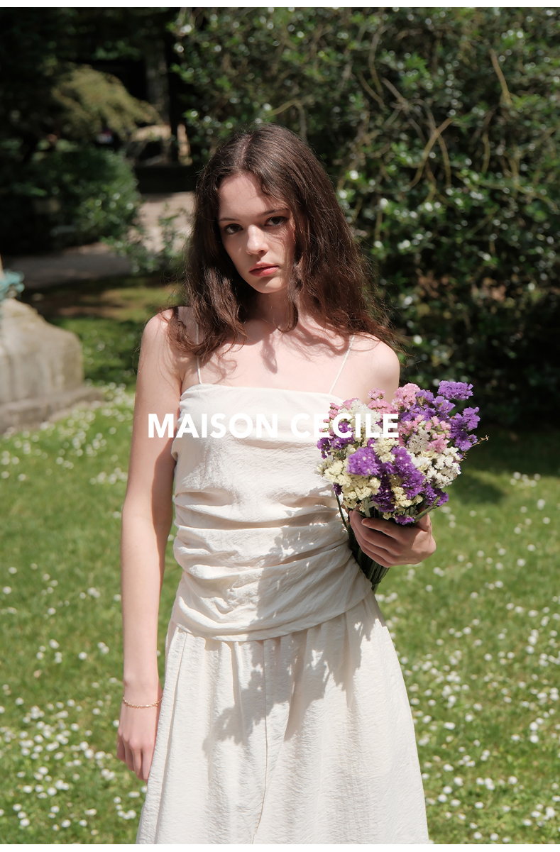 MAISON CECILE 六色/经典重现加色法式干丝抽褶吊带/花苞半裙