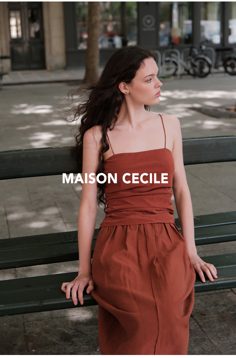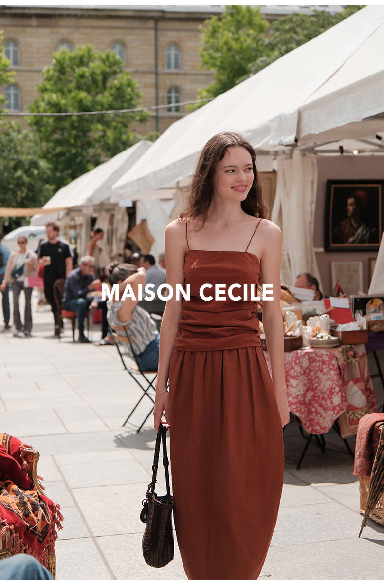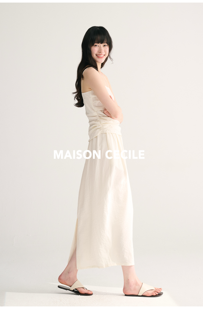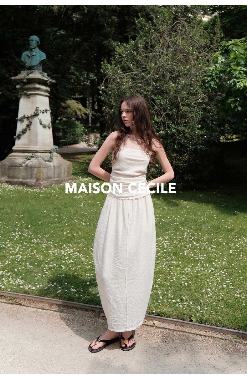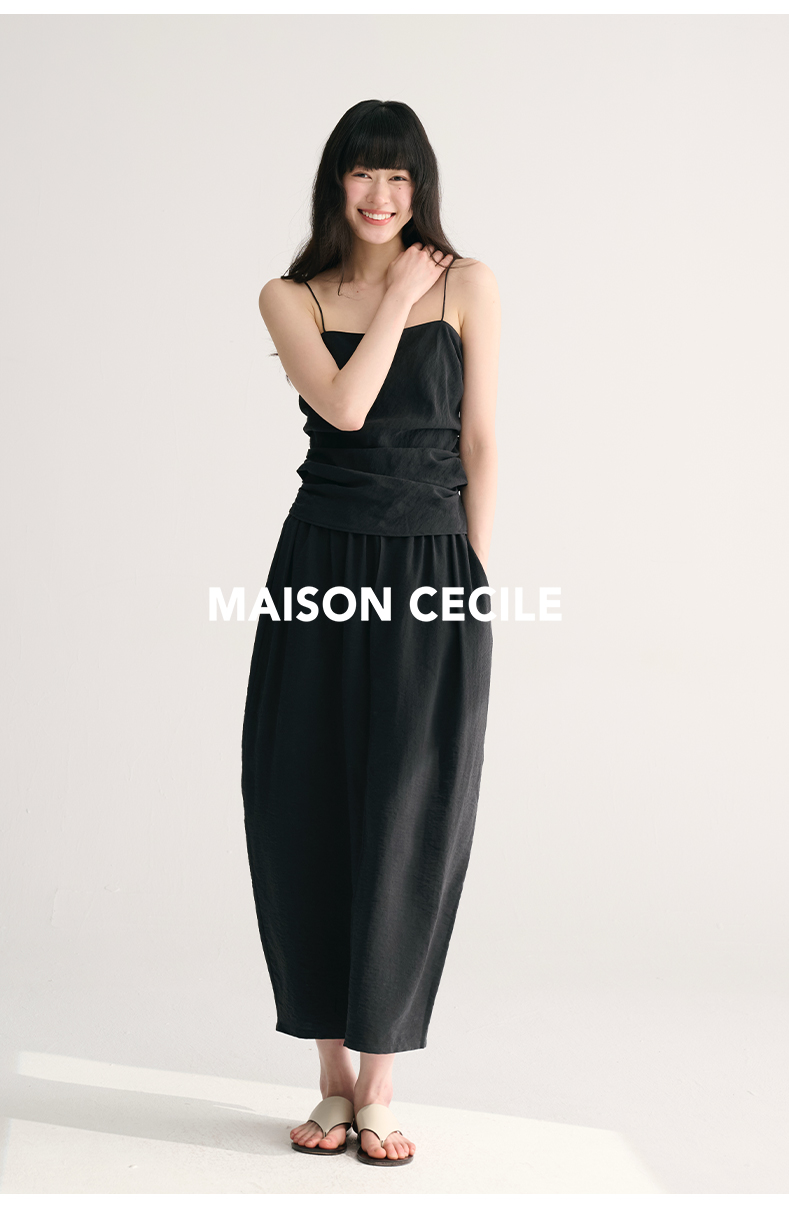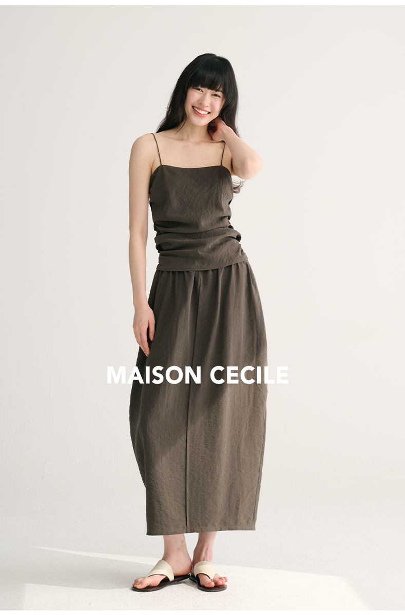 MAISON CECILE 六色/经典重现加色法式干丝抽褶吊带/花苞半裙