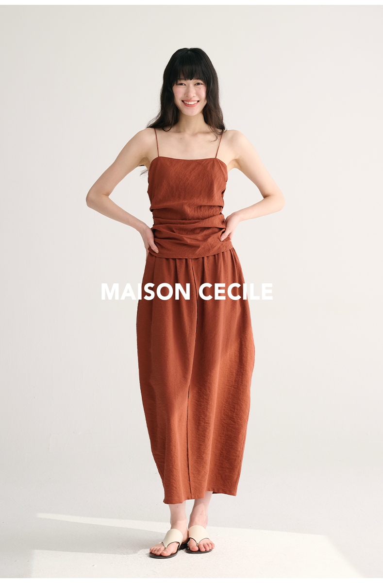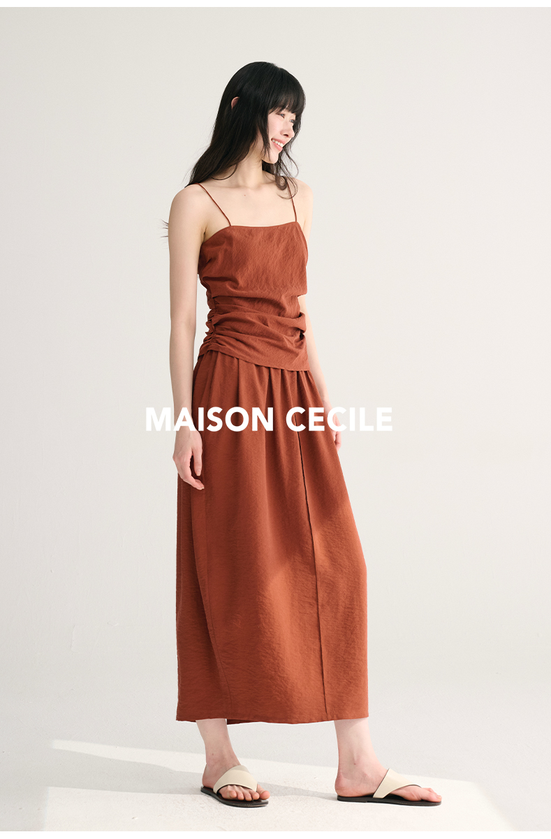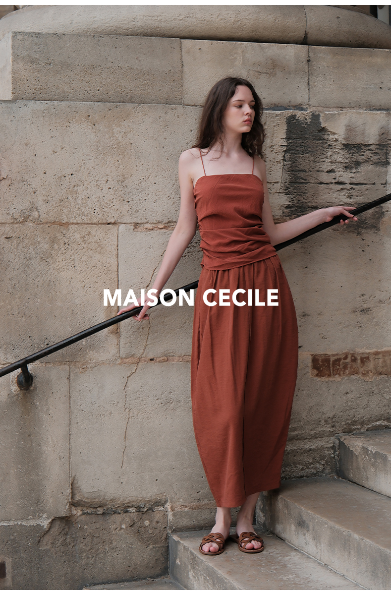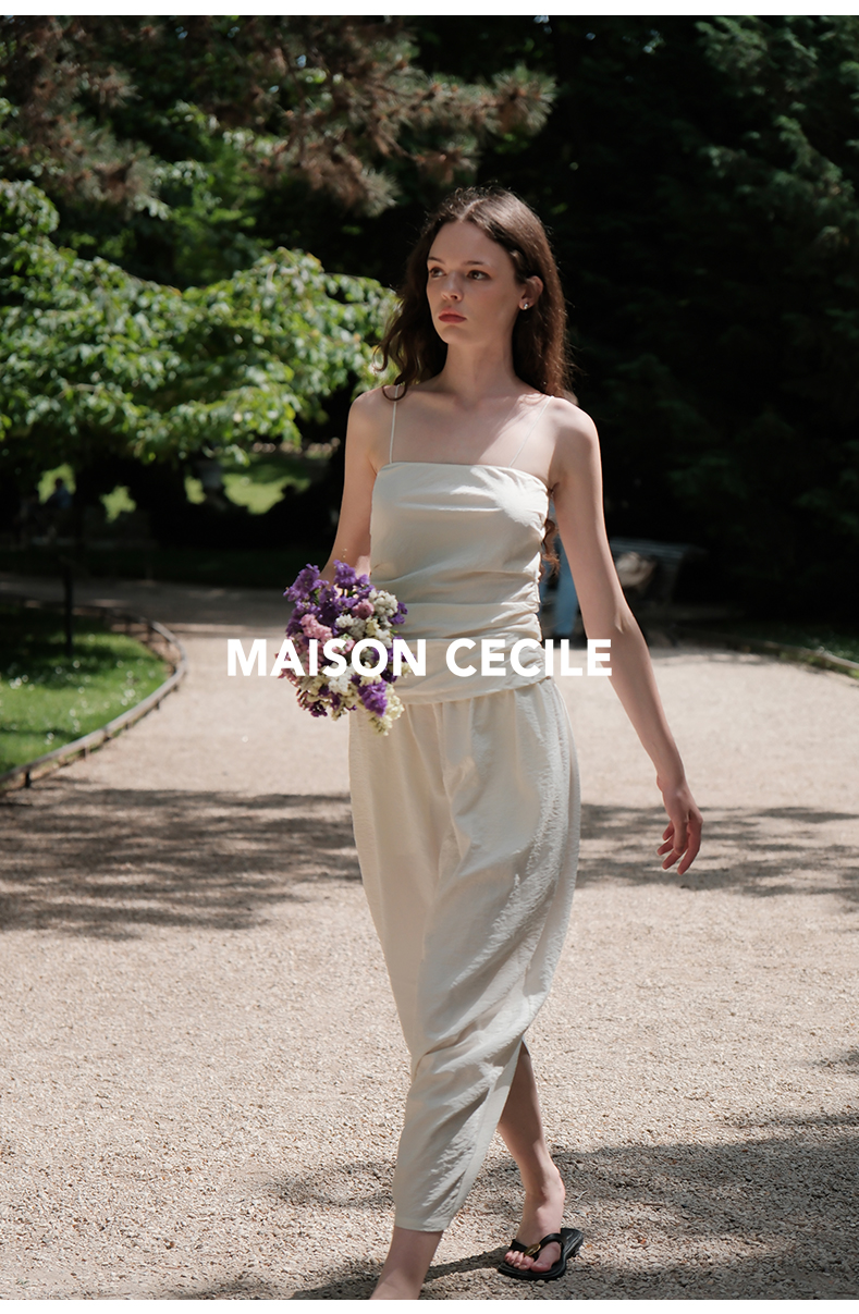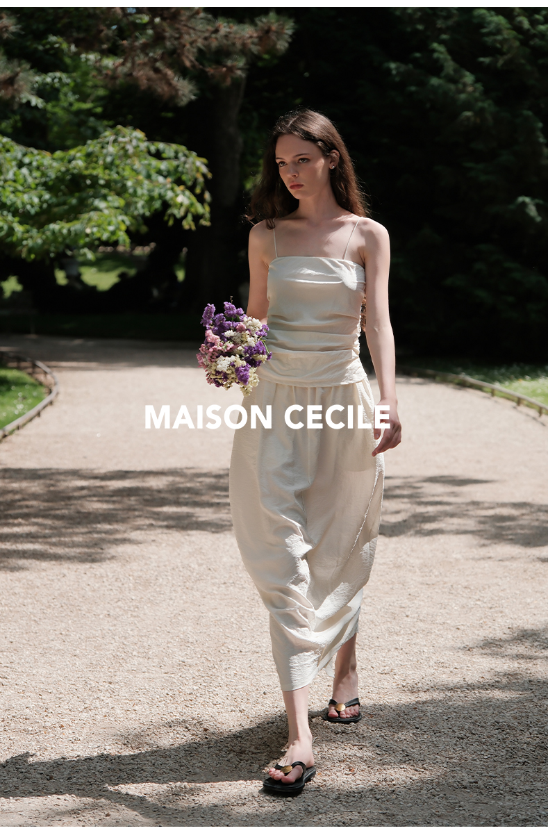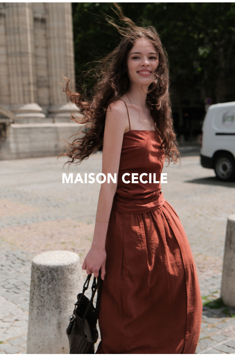 MAISON CECILE 六色/经典重现加色法式干丝抽褶吊带/花苞半裙
