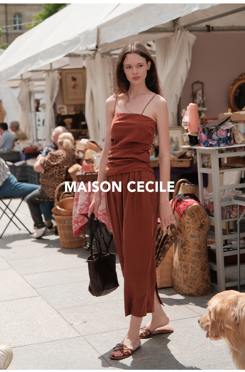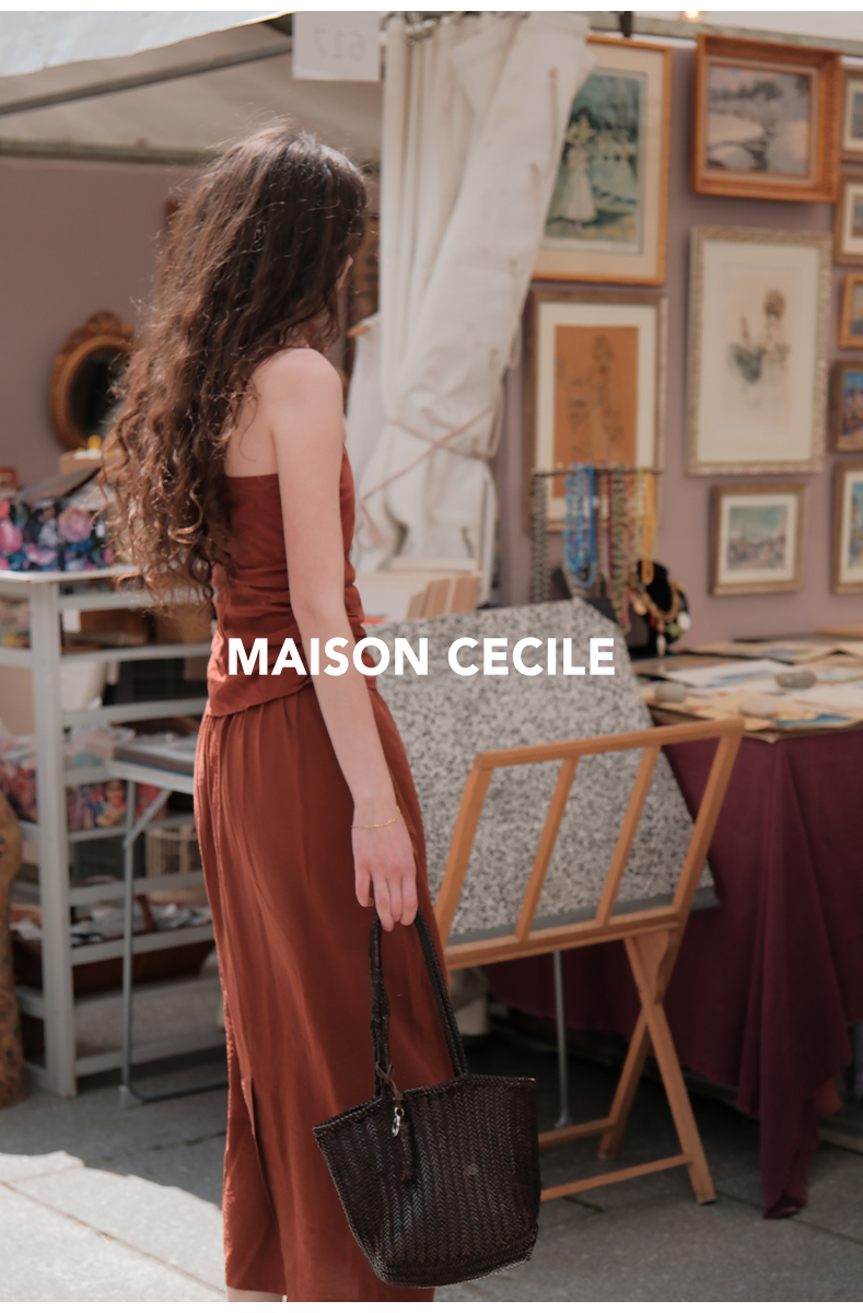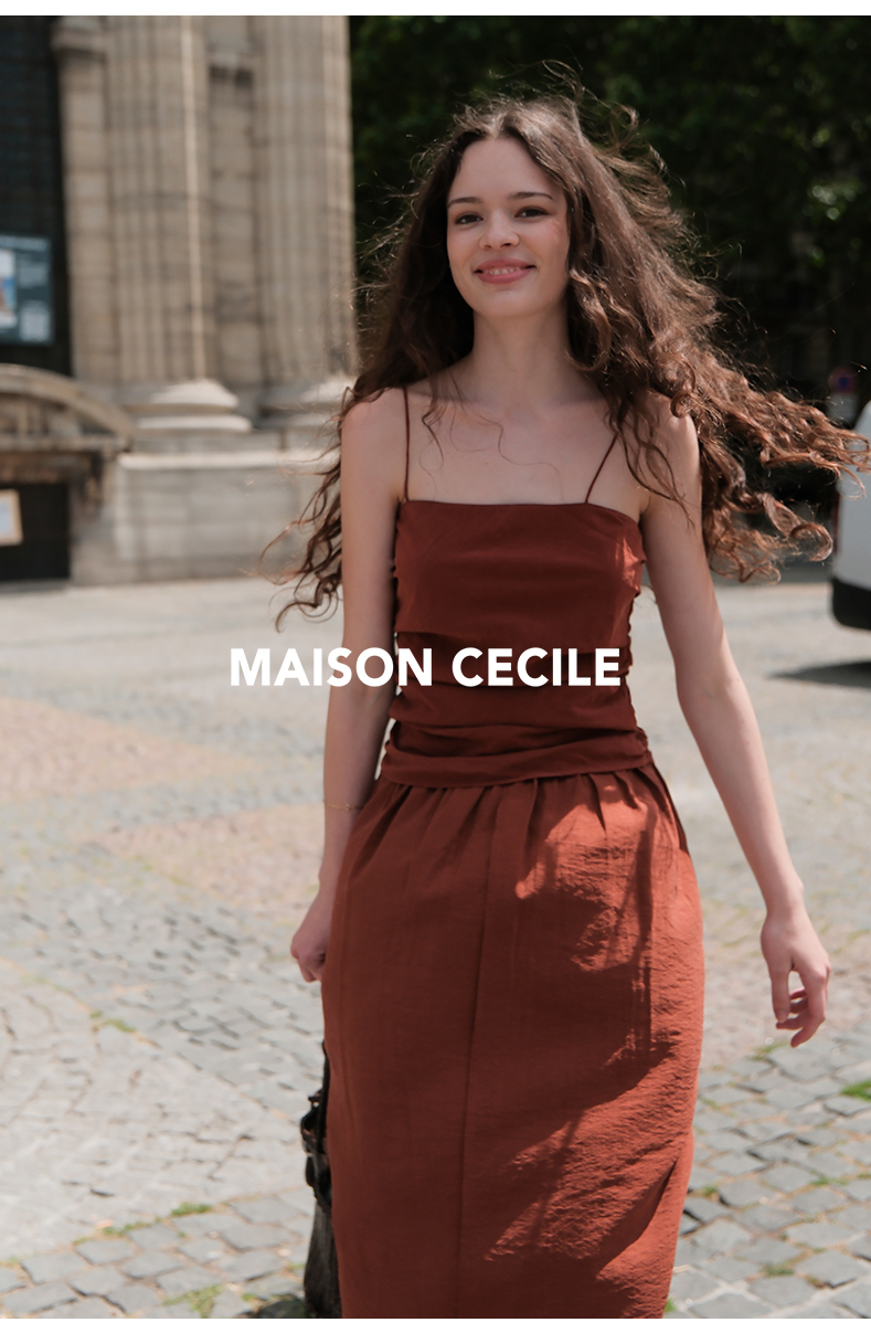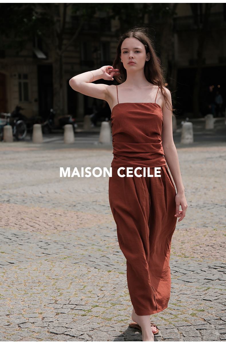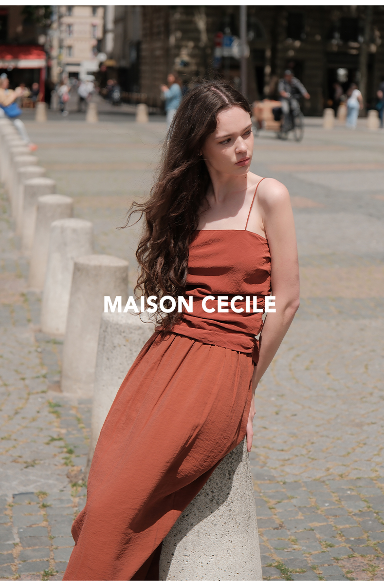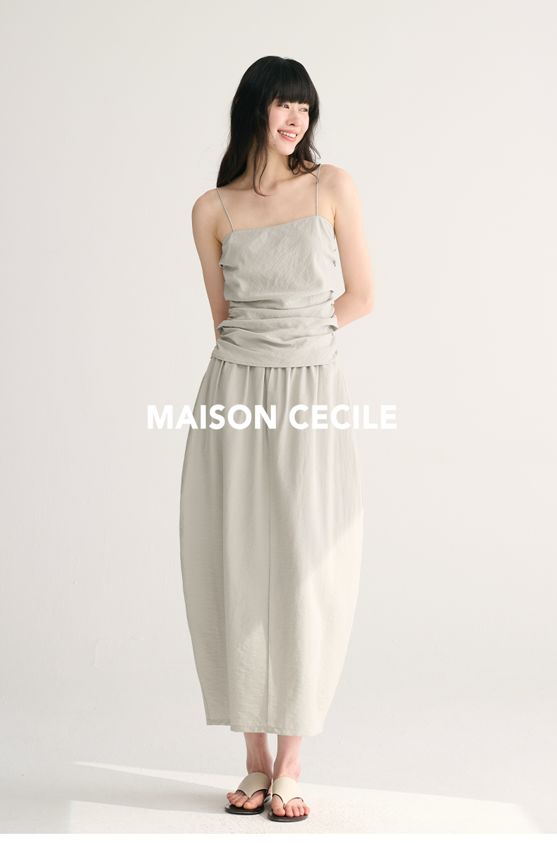 MAISON CECILE 六色/经典重现加色法式干丝抽褶吊带/花苞半裙