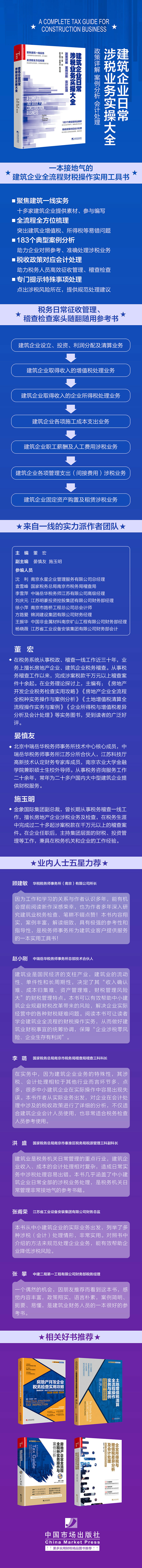本书从中小建筑企业的实际业务出发,列举了多种涉税(会计)处理情形,非常实用。对照书中介绍的方法来规范处理企业业务,能有效帮助企业降低涉税风险。