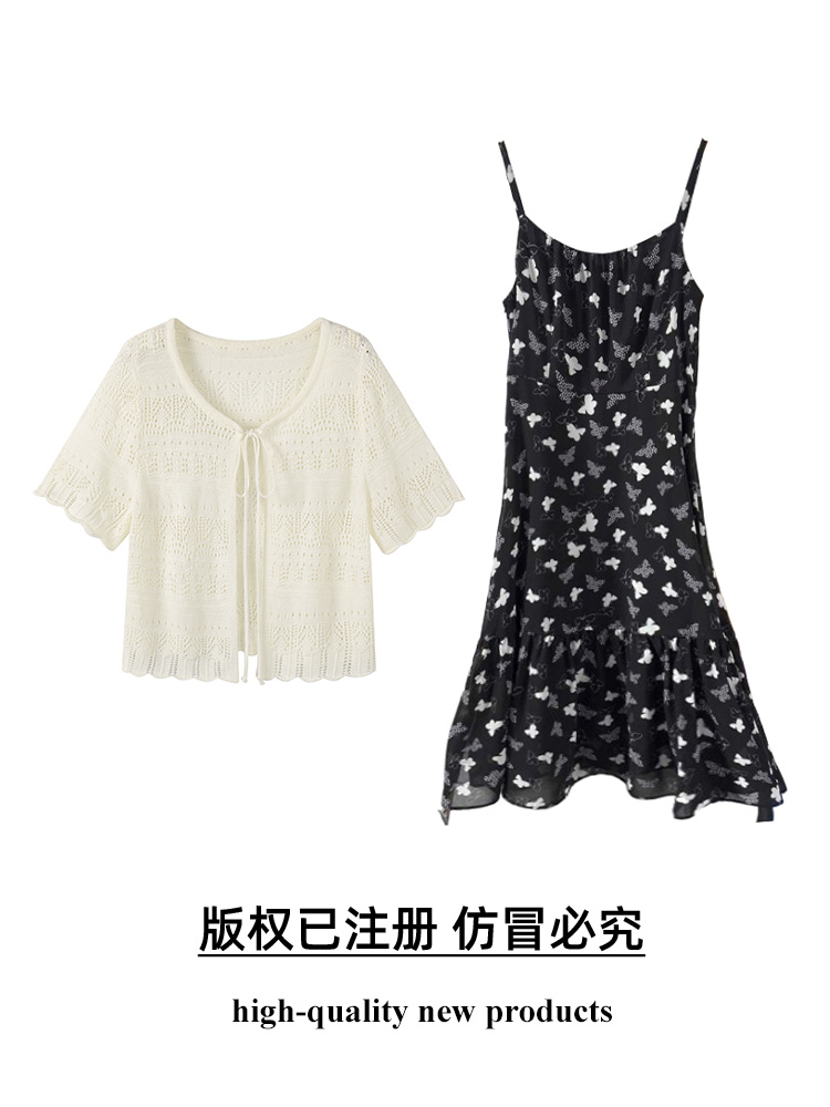 奢姿大码女装2025夏季镂空钩花针织开衫减龄显瘦碎花连衣裙两件套9652993806AB