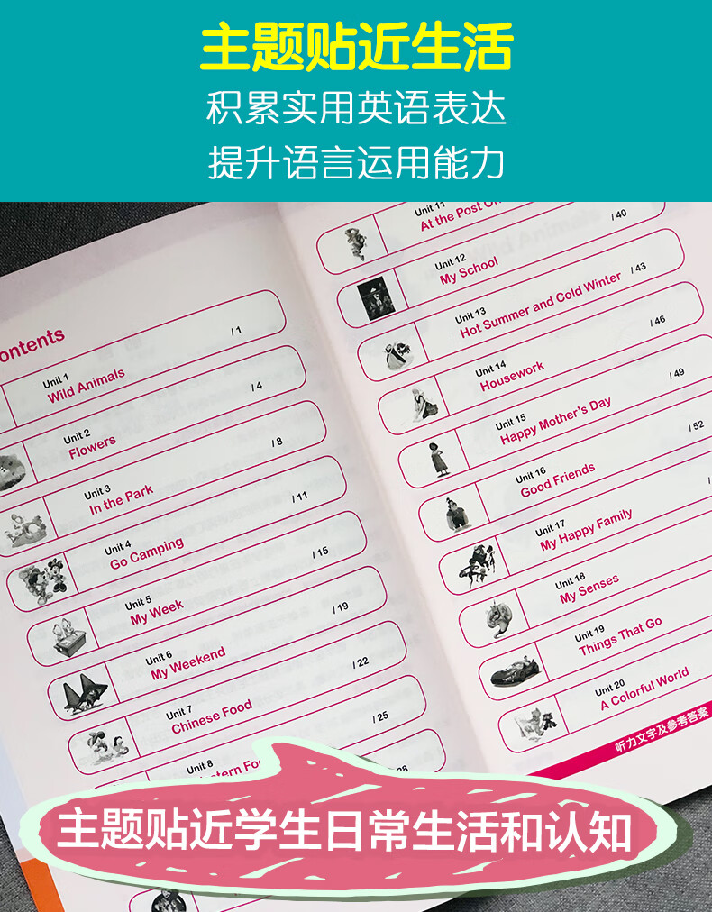 一、以贴近学生日常生活和认知的主题为切入点,语料编写注重学生的真实生活体验,着重突出学生在日常生活中会遇到的情境,使学生在提高英语听力的同时,积累实用的英语词汇和表达,提升英语语言实际运用能力。