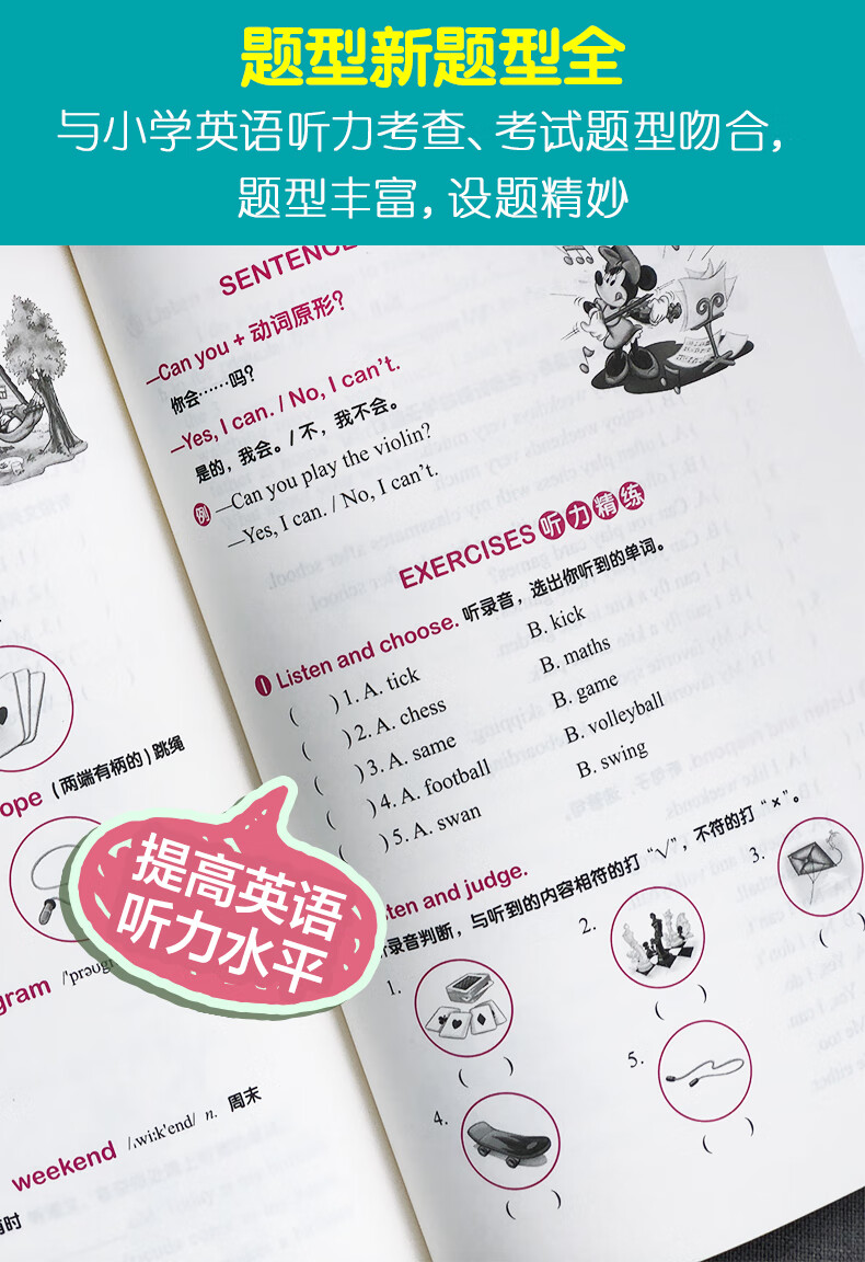 与小学英语听力主要考查、考试题型吻合,题型丰富,设题精妙,提高英语听力水平