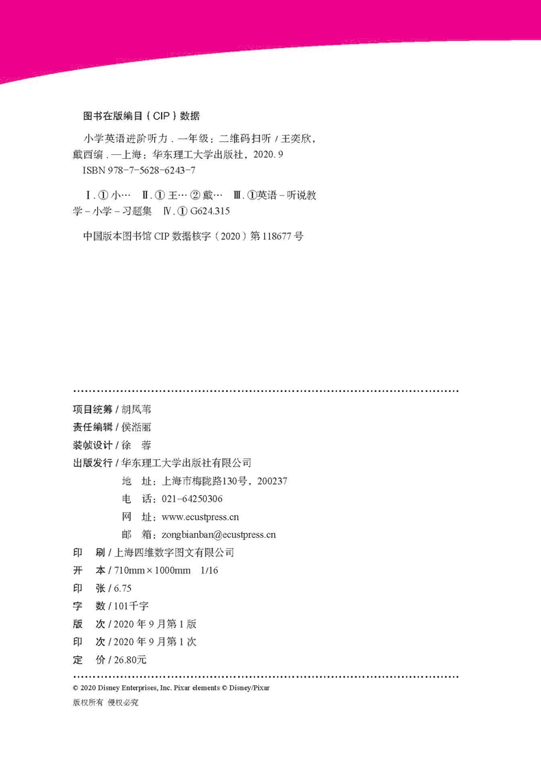 (仓发) [迪士尼]小学英语进阶听力(一年级)(二维码扫听)/华东理工大学出版社/王奕欣 戴西/9787562862437