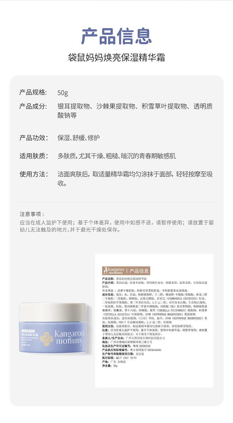 【青少年焕亮精华霜】积雪草修护面霜 28天焕亮 修护强锁水 焕亮保湿精华霜50g