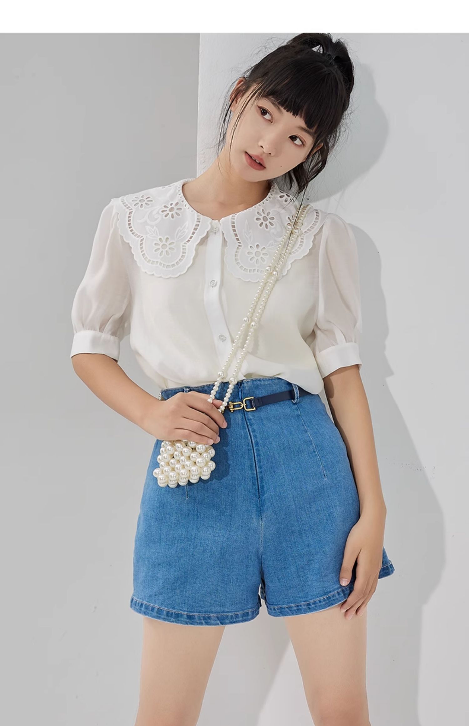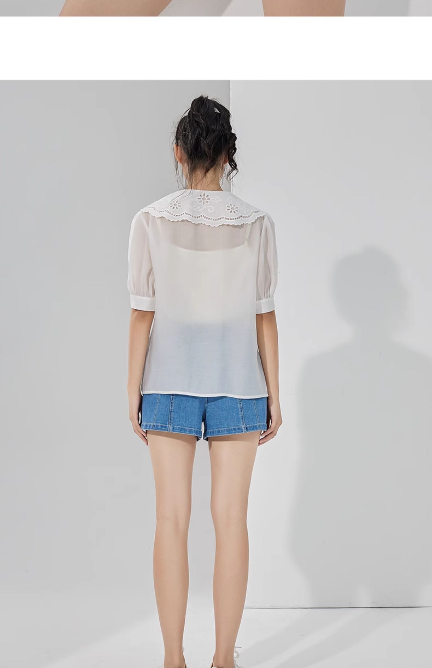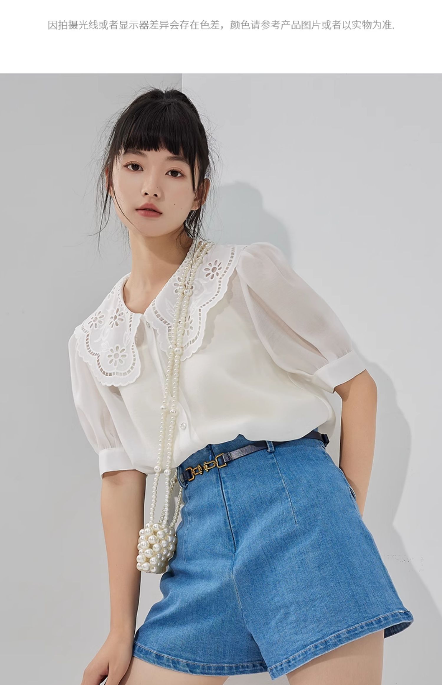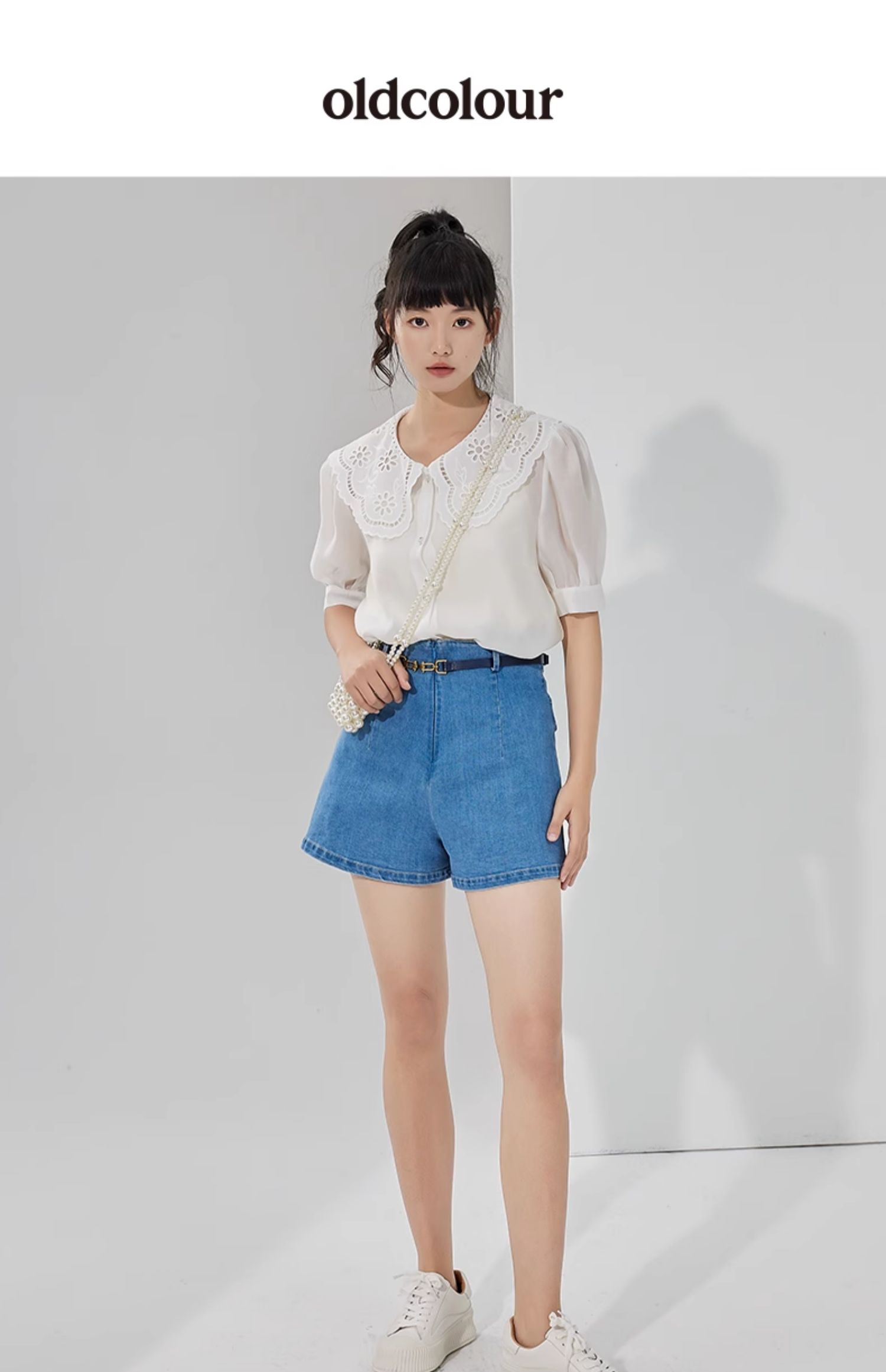 oldcolour夏季新品白色娃娃领薄款宽松百搭短袖衬衫上衣女