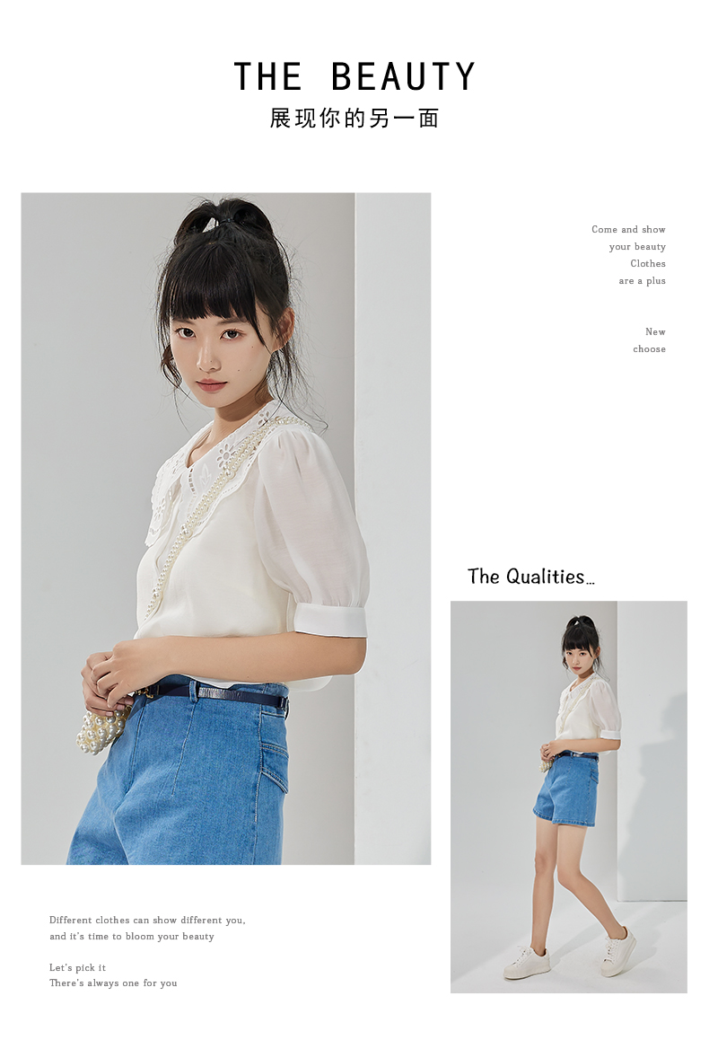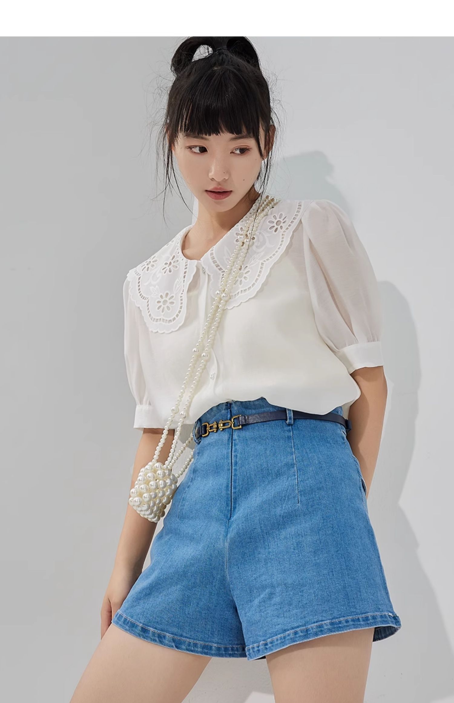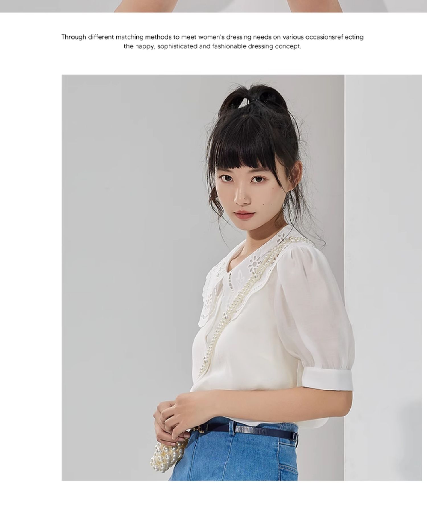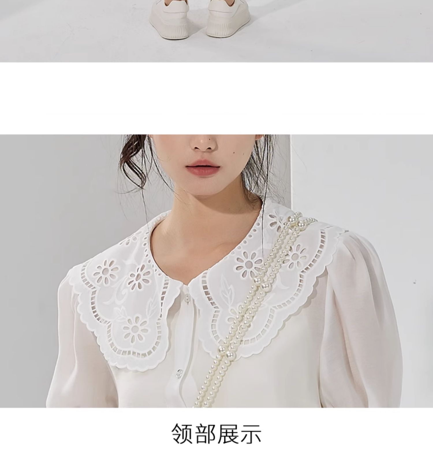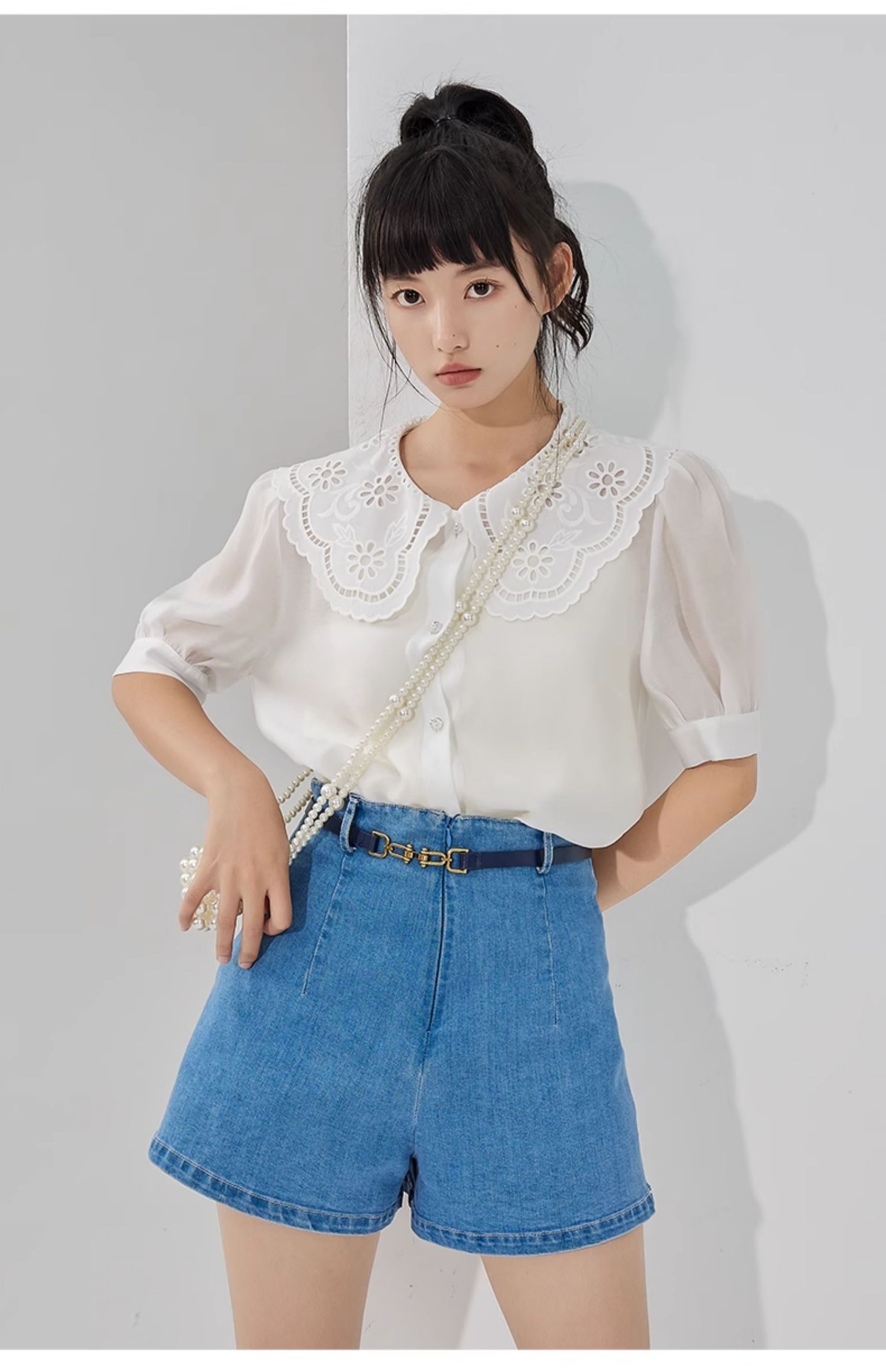 oldcolour夏季新品白色娃娃领薄款宽松百搭短袖衬衫上衣女