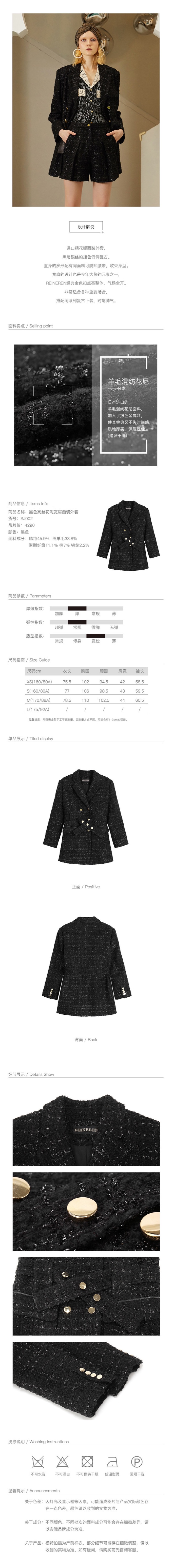 黑色亮丝花呢宽肩西装外套