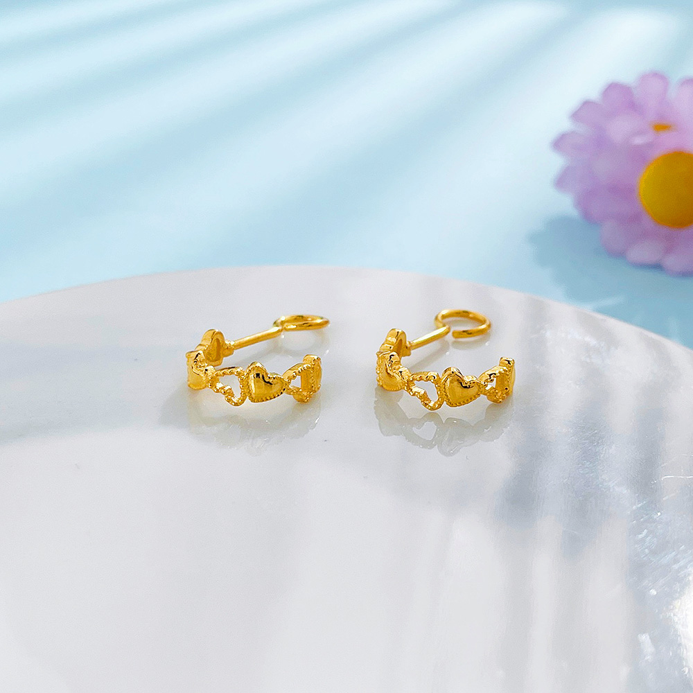 【限时克减150元】足金999.9 #怦然心动 【精品】镂空真爱永恒心连心爱心心形耳饰耳钉半月耳圈(AWWES00293)预售产品下单后不退款不退货不换货不补差价