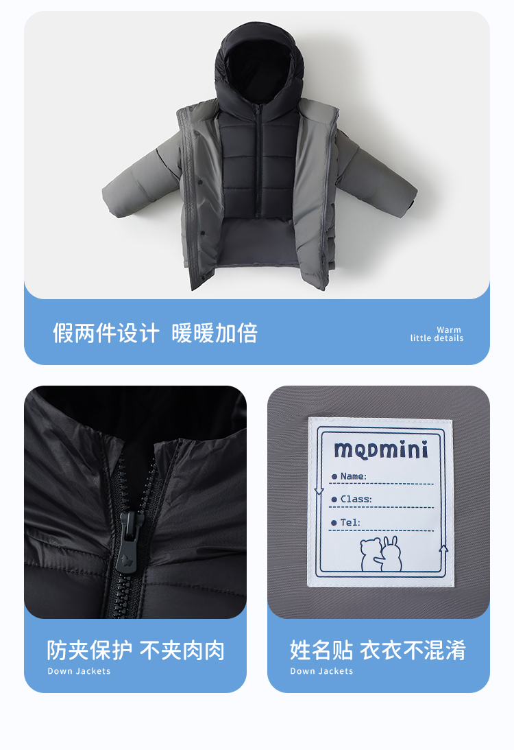 【90-140】【假两件羽绒服】【MQDmini】男女童中长款鹅绒服