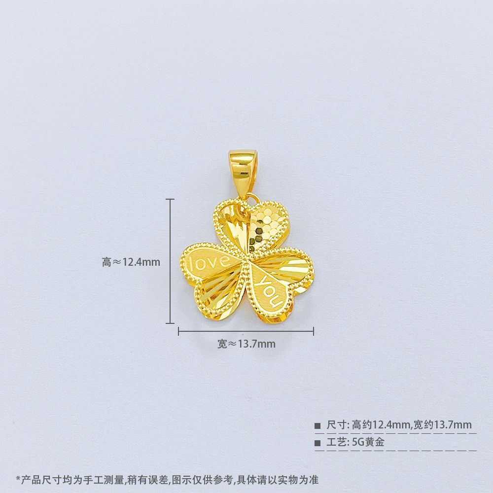 【限时7.5折】【定价黄金】足金999 5G黄金CNC影底吊坠鱼鳞LOVE三叶草吊坠(AG5GDZ00138)(预售产品下单后不退款不退货不换货不补差价)(预售产品下单后不退款不退货不换货不补差价)