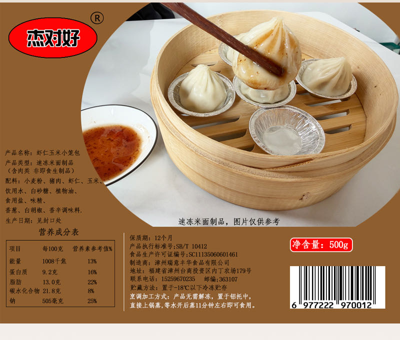 杰对好玉米虾仁小笼包(500g±20g/盒 18-19个 配锡纸托)生产日期: 12月16日