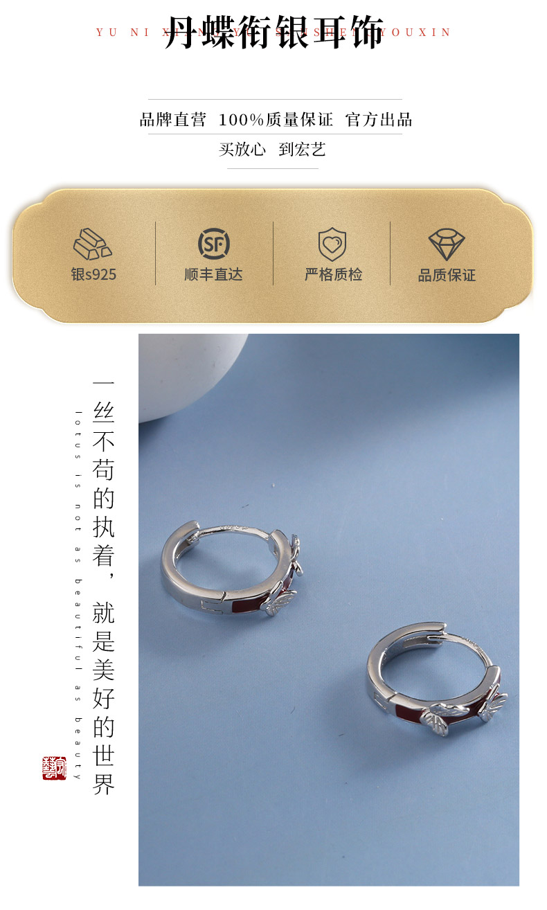【宏艺珠宝】丹蝶衔银·银s925耳饰